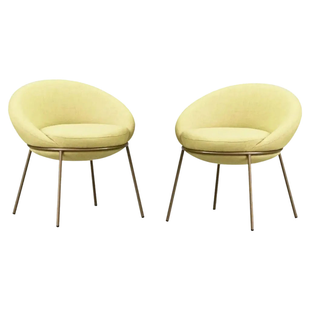 Pair of Gold Nido by Imperfettolab2008Dimensions: W 130 x D 97 x H 66 cm Materials: Varnished fibreglass, metal base Gold finishImperfetto labWho we are ? We are a family.Verter Turroni, Emanuela Ravelli and our children Elia, Margherita and Eusebio.All together, we are separate parts and their expansion.The laboratory is in the care of Verter.From the sketch on paper he mixes materials, shapes and colours to the definition of the object.His intuitive and visionary research is performed with the complicity, recognition and practical support of his brother Erich.Emanuela is the voice of a vivid and silent work.She connects Imperfettolab with the other and with the rest of the world, respecting its nature and identity.She watches over its wholeness and authenticity.The playful spirit is entrusted to our children.They are the ones who test our works, certify their durability, functionality and enjoyment.We believe it is their expression, after all, that validates and makes our work universal.Since 1992, our thoughts and actions have moved, grown and taken shape in the land of Romagna.Between hills of cherry and olive trees, cultivated plains and piles of recyclable steel and iron.In between, the ancient Roman road via Emilia.A contrasting and mutating landscape that reflects in our furnishing sculptures.Ours is an open space, the times of art and life seamlessly merge.