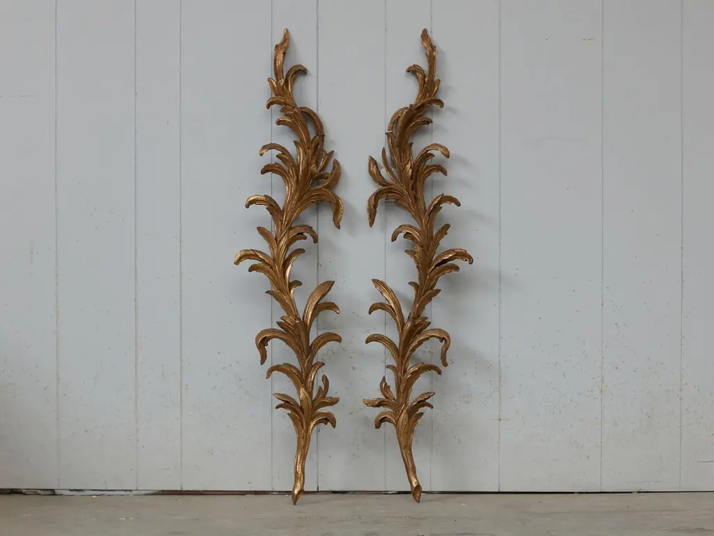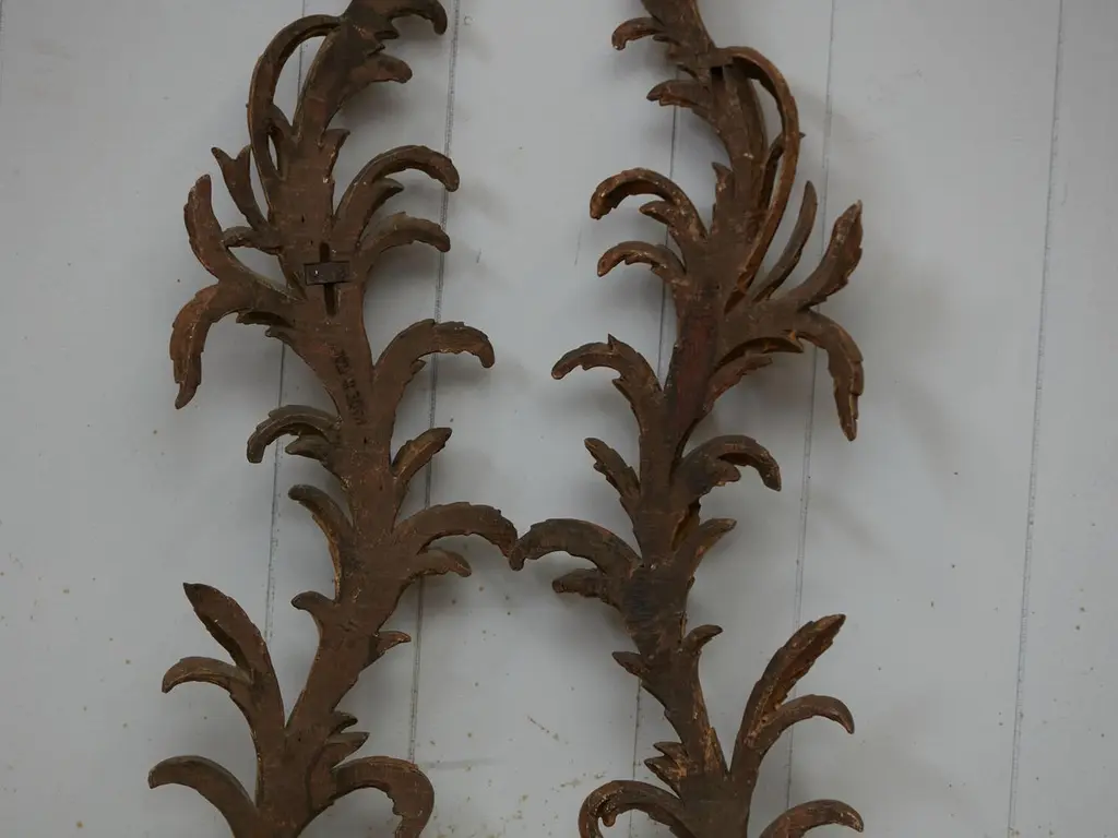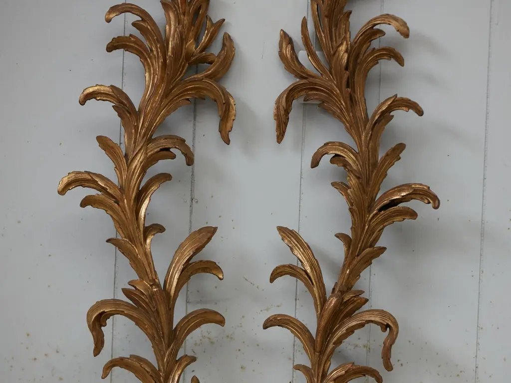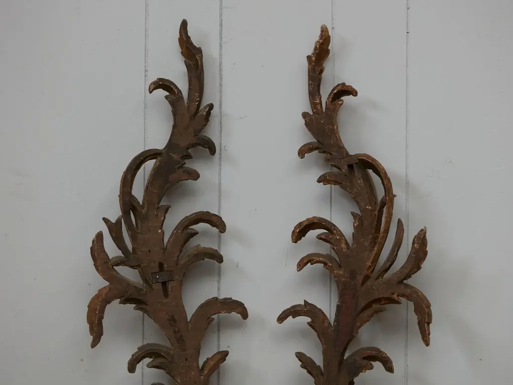 Pair Of Italian 1820s Carved Giltwood Wall Fragments Depicting Scrolling Foliage