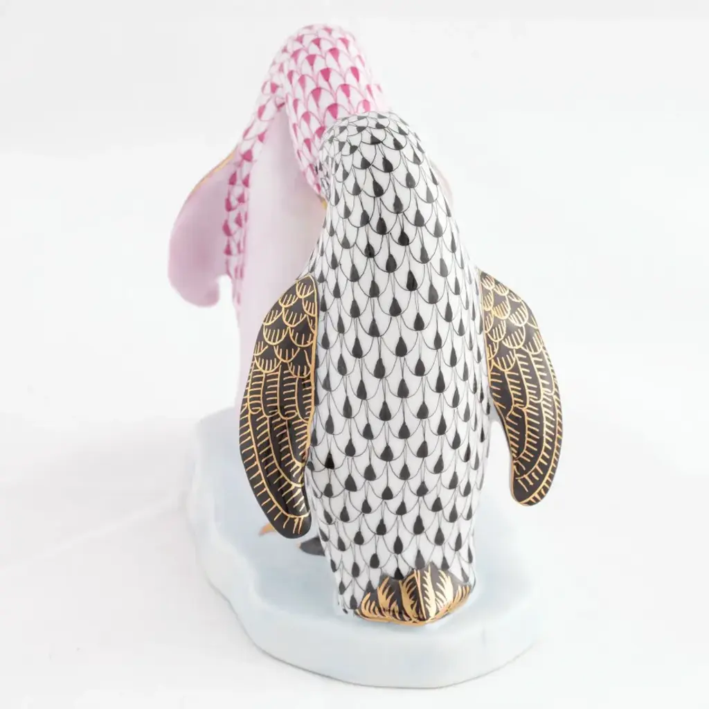 Endearing animals meek and bold, large and small, demure and majestic eagerly await the chance to melt your heart and warm your home. Each is brought to life by the skilled hands of artisans crafting and painting these charming porcelain creatures. The famous fishnet décor adorning many of the animals took form in 1858 when a Herend painter became inspired by a fishscale design he saw on a Chinese porcelain plate and painted a similar pattern onto a rooster figurine to imitate feathers. The rest is history, with the fishnet design now a Herend signature prized worldwide. Now the biggest porcelain manufactory in Europe, Herend was founded in 1826 to produce earthenware in the small Hungarian village for which it was named. At the time, Hungary was flooded with low-cost pottery, but in 1839, Mor Fischer became the Manufactory’s new owner and he decided to focus on producing dinnerware replacement pieces for Europe’s royal families to complement their valuable porcelain patterns from Germany and the Far East. As his client base grew, Fischer commissioned his artists to begin designing dinnerware patterns of their own. Queen Victoria’s 1851 purchase of a large set for Windsor Castle was a milestone, setting the stage for aristocrats throughout Europe to clamor for Herend in their estates. In the 1850s, Herend added meticulously-crafted figurines to its creations. Herend’s trademark fishnet pattern, which is widely recognized and prized as Herend’s signature design, started in 1858 when an artist who was intrigued with a Chinese plate’s fish scale design painted it onto a rooster figurine to imitate feathers.