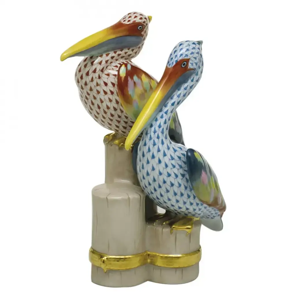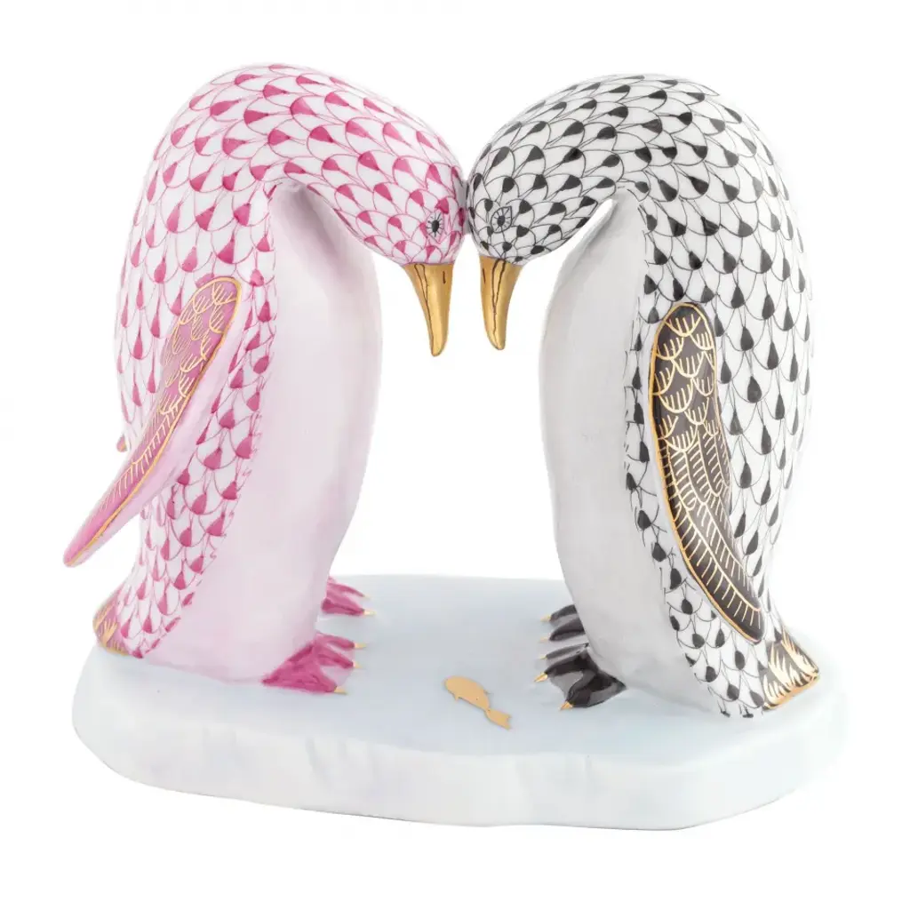 Endearing animals meek and bold, large and small, demure and majestic eagerly await the chance to melt your heart and warm your home. Each is brought to life by the skilled hands of artisans crafting and painting these charming porcelain creatures. The famous fishnet décor adorning many of the animals took form in 1858 when a Herend painter became inspired by a fishscale design he saw on a Chinese porcelain plate and painted a similar pattern onto a rooster figurine to imitate feathers. The rest is history, with the fishnet design now a Herend signature prized worldwide. Now the biggest porcelain manufactory in Europe, Herend was founded in 1826 to produce earthenware in the small Hungarian village for which it was named. At the time, Hungary was flooded with low-cost pottery, but in 1839, Mor Fischer became the Manufactory’s new owner and he decided to focus on producing dinnerware replacement pieces for Europe’s royal families to complement their valuable porcelain patterns from Germany and the Far East. As his client base grew, Fischer commissioned his artists to begin designing dinnerware patterns of their own. Queen Victoria’s 1851 purchase of a large set for Windsor Castle was a milestone, setting the stage for aristocrats throughout Europe to clamor for Herend in their estates. In the 1850s, Herend added meticulously-crafted figurines to its creations. Herend’s trademark fishnet pattern, which is widely recognized and prized as Herend’s signature design, started in 1858 when an artist who was intrigued with a Chinese plate’s fish scale design painted it onto a rooster figurine to imitate feathers.