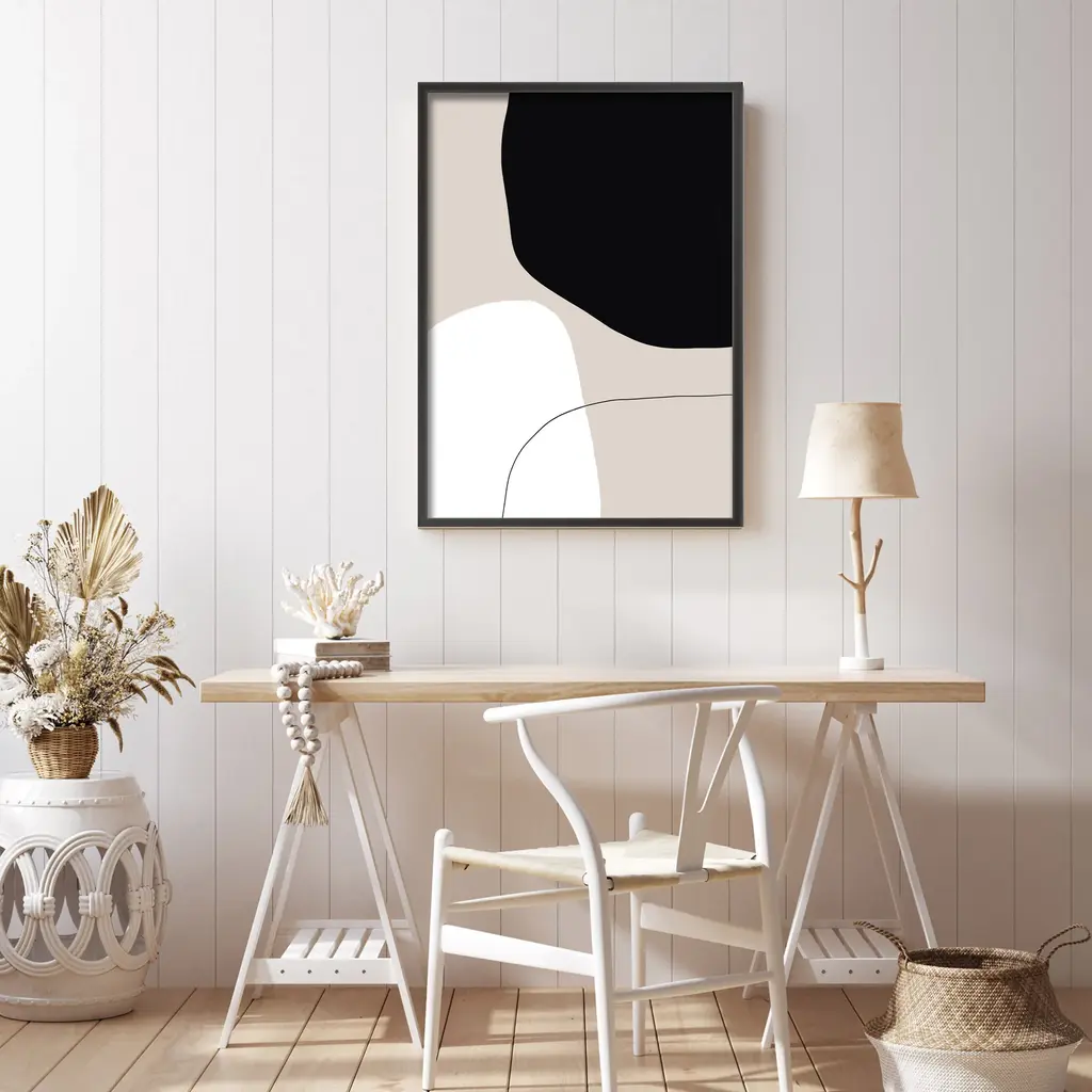 Infuse any space with the essence of this trendy framed print wall art titled "Pairing" by Uplusmestudio. The piece features elegant abstract black and white shapes over a white background that will complement any modern space. Handcrafted in Chattanooga, Tennessee, by Ready2HangArt using a locally sourced artist print, finished with a rear hanger for simple installation.