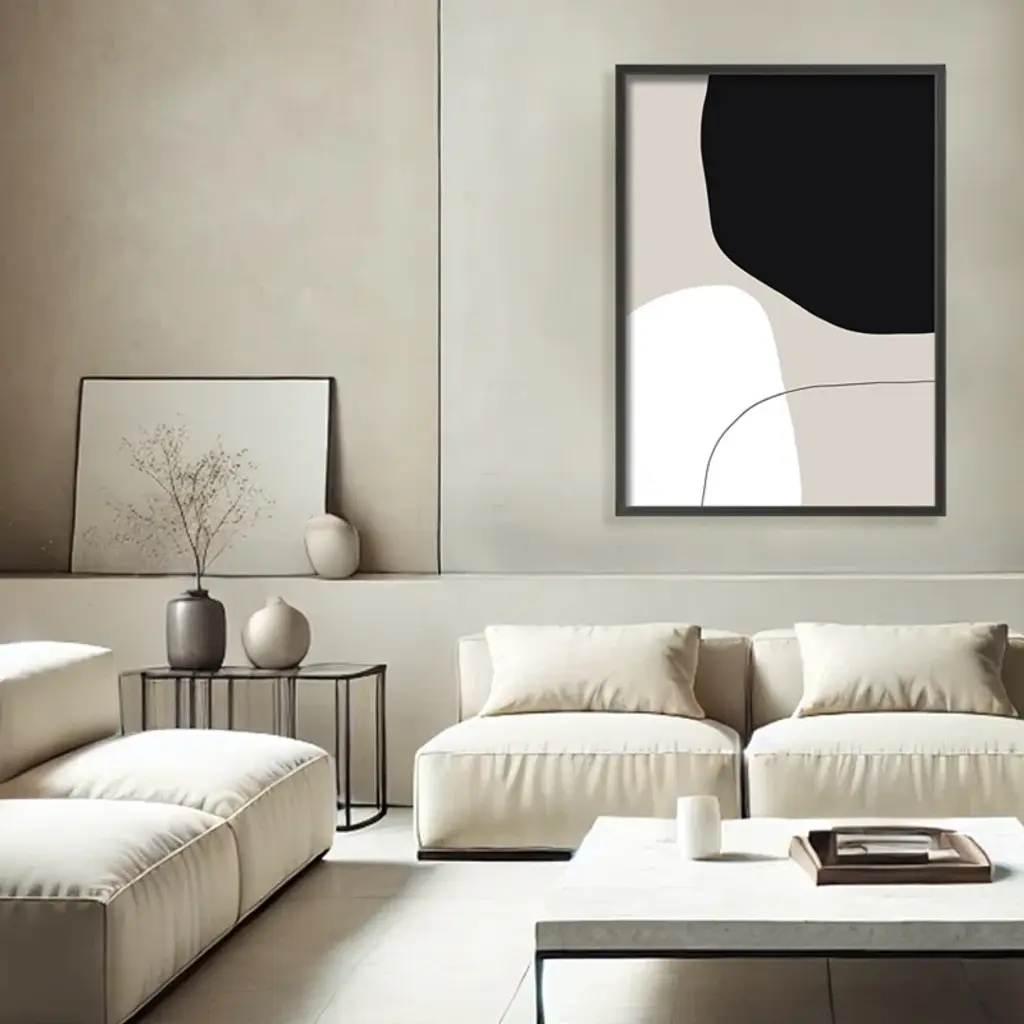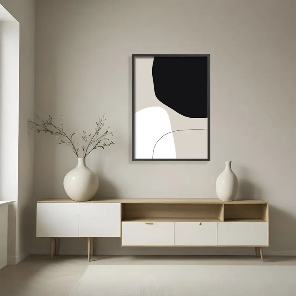 Infuse any space with the essence of this trendy framed print wall art titled "Pairing" by Uplusmestudio. The piece features elegant abstract black-and-white shapes over a white background that will complement any modern space. Handcrafted in Chattanooga, Tennessee by Ready2HangArt using a locally sourced artist print, finished with a rear hanger for simple installation.