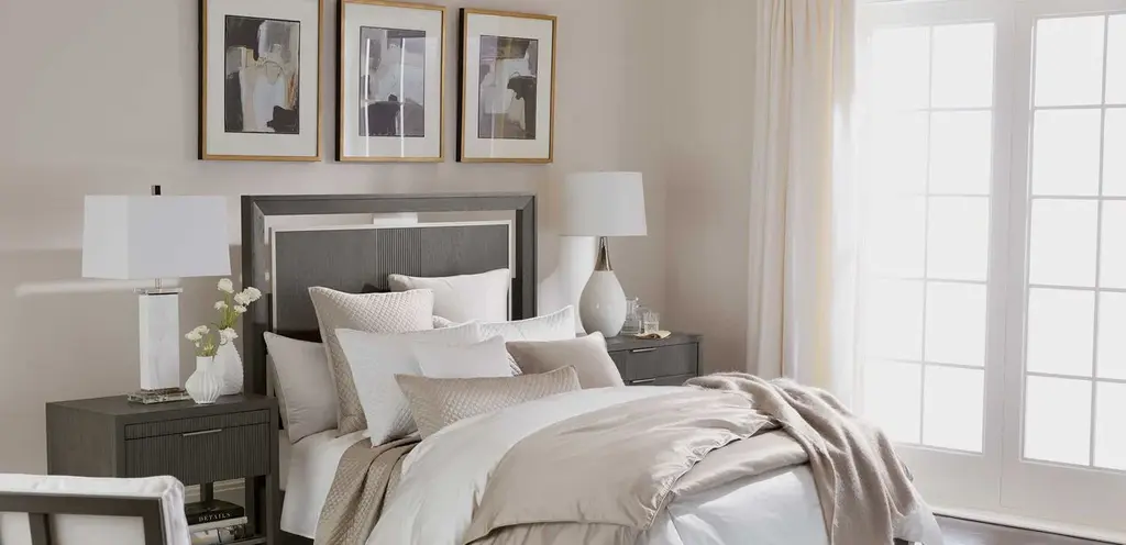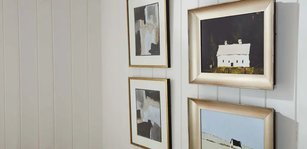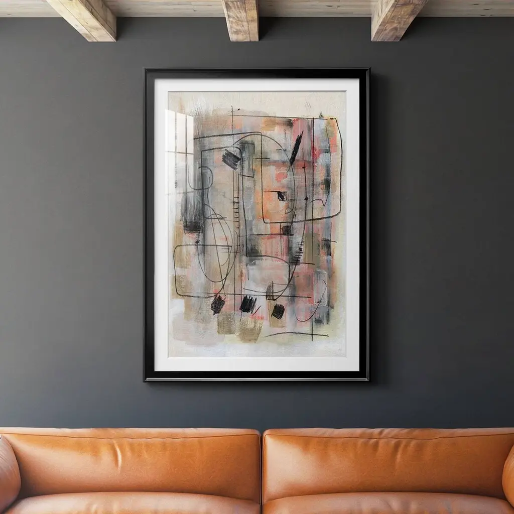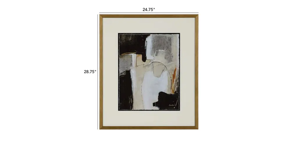 A study in the deliberate manipulation of shape. The image’s deckle edges amplify the abstract's lines, adding character and texture to the print. Presented in a hand-finished brushed gold frame, it's one of a series of three.