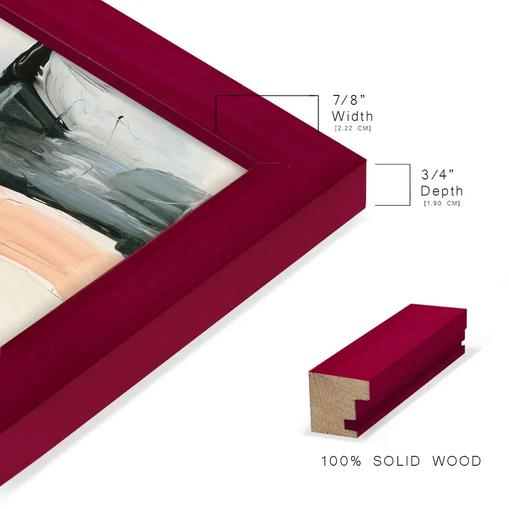 Palette Meld II -EZ SWITCH Framed Print w/glass-Cherry Red A delightful, framed print. Featuring a solid wood frame with real wood glass. This premium print is giclee quality. In addition, every frame features a removable back and table top stand. This allows you to change your art in the future or to just stand the art on a table for a new look. We are sure you'll enjoy our new series of EZ SWITCH Framed Art. Solid Wood Frame Real Glass Removable / Replaceable Art Built in Tabletop Stand Sizes range from 4x6 up to 12x15 - buy just one or pair them up as sets as you see fit.