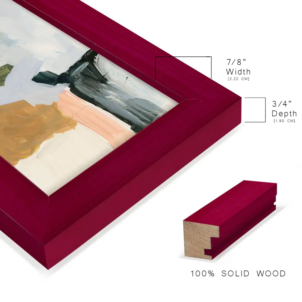 Palette Meld II -EZ SWITCH Framed Print w/glass-Cherry Red A delightful, framed print. Featuring a solid wood frame with real wood glass. This premium print is giclee quality. In addition, every frame features a removable back and table top stand. This allows you to change your art in the future or to just stand the art on a table for a new look. We are sure you'll enjoy our new series of EZ SWITCH Framed Art. Solid Wood Frame Real Glass Removable / Replaceable Art Built in Tabletop Stand Sizes range from 4x6 up to 12x15 - buy just one or pair them up as sets as you see fit.