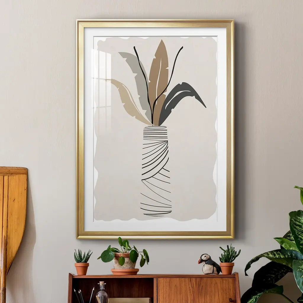 Palm Arrangement II Premium Framed Print - Ready to Hang A Premium Framed Print created to last. Framed in distressed wood and available in an array of sizes and colors Featuring a beveled a solid wood stretcher bar, each piece comes ready to hand 4 SIZES AVAILABLE 30.5''X42.5'' - Overall Size 26.5'X36.5'' - Overall Size 22.5''x30.5'' - Overall Size 18.5''x24.5'' - Overall Size Each piece is made to order. Each piece comes with hanging hardware. Made in the USA Ready to Hang Giclee Paper Print Acrylic Glass Beveled Matt Board