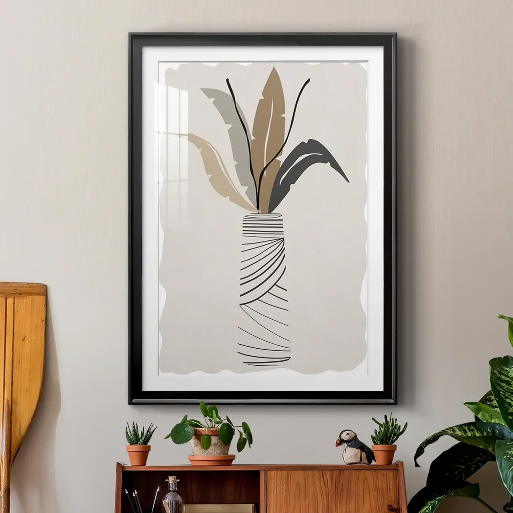 Palm Arrangement II Premium Framed Print - Ready to Hang A Premium Framed Print created to last. Framed in distressed wood and available in an array of sizes and colors Featuring a beveled a solid wood stretcher bar, each piece comes ready to hand 4 SIZES AVAILABLE 30.5''X42.5'' - Overall Size 26.5'X36.5'' - Overall Size 22.5''x30.5'' - Overall Size 18.5''x24.5'' - Overall Size Each piece is made to order. Each piece comes with hanging hardware. Made in the USA Ready to Hang Giclee Paper Print Acrylic Glass Beveled Matt Board