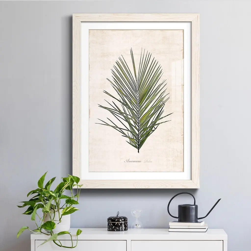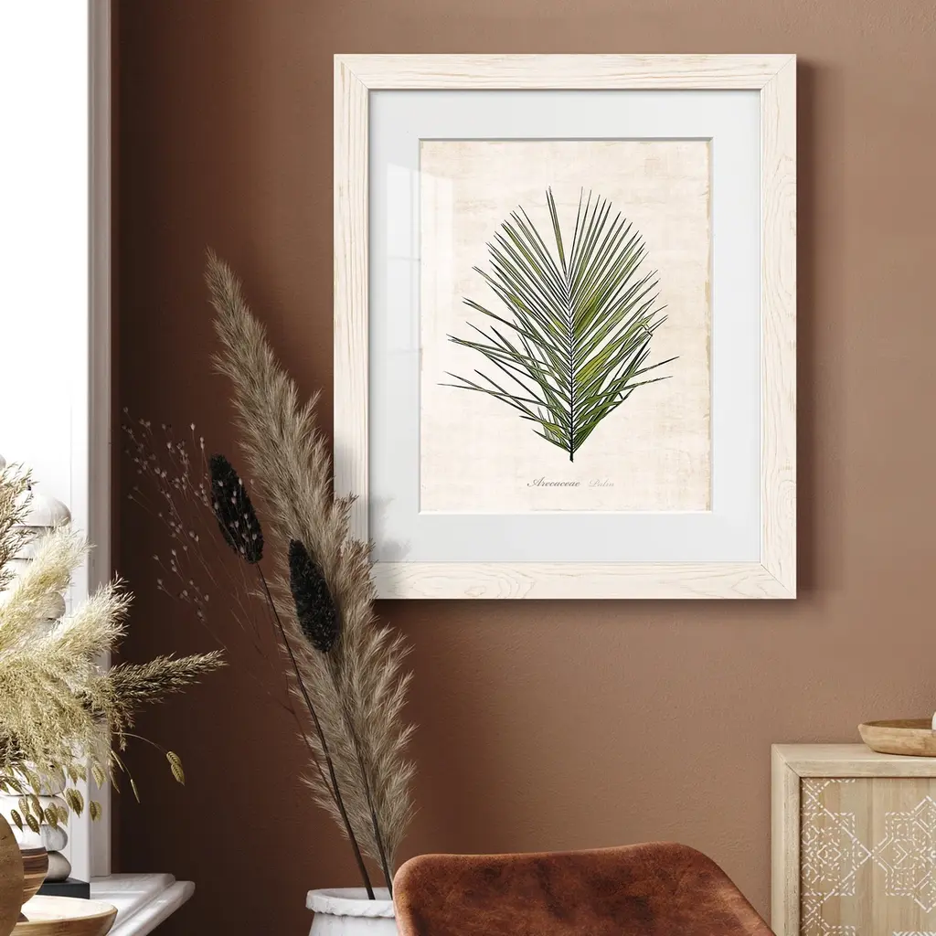 Palm Botanical I-Premium Framed Print - Ready to Hang Framed in distressed wood and available in an array of sizes and colors Each piece is joined and assembled by hand and comes ready to hang 2 INCH BEVELED MATTE BOARD PLEXIGLASS COVERING READY TO HANG MADE IN THE USA SOLID WOOD FRAME MADE IN USA FADE RESISTANT GICLEE PRINTING on Canvas or Paper