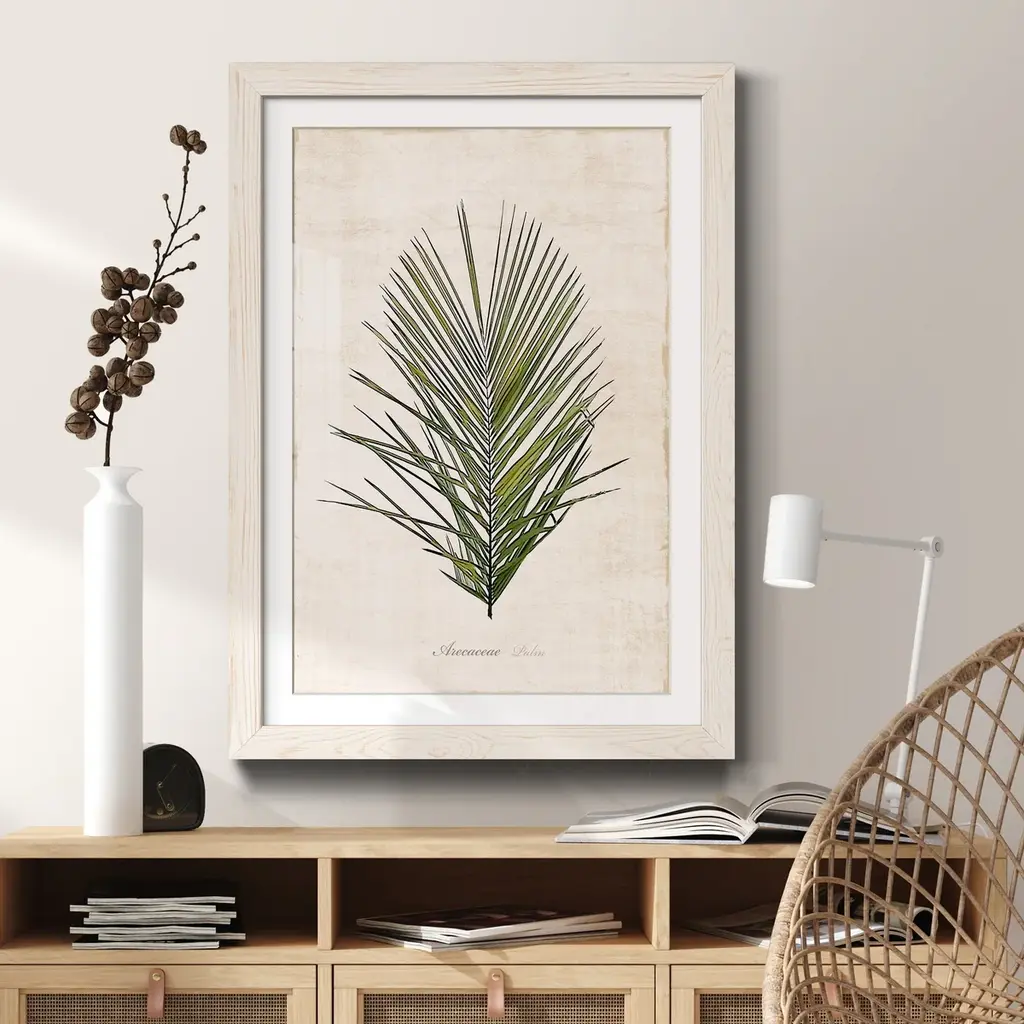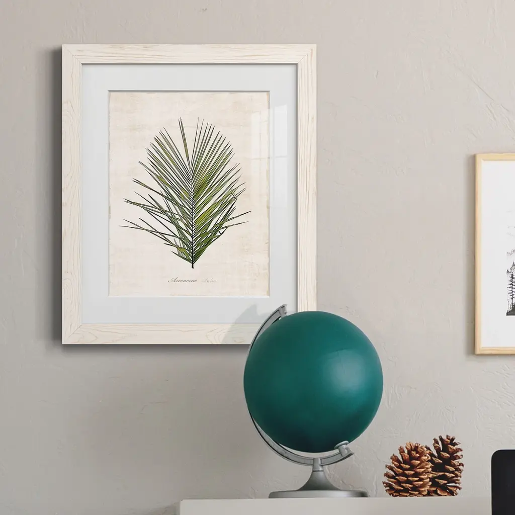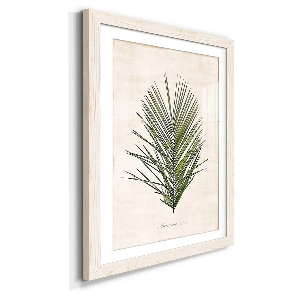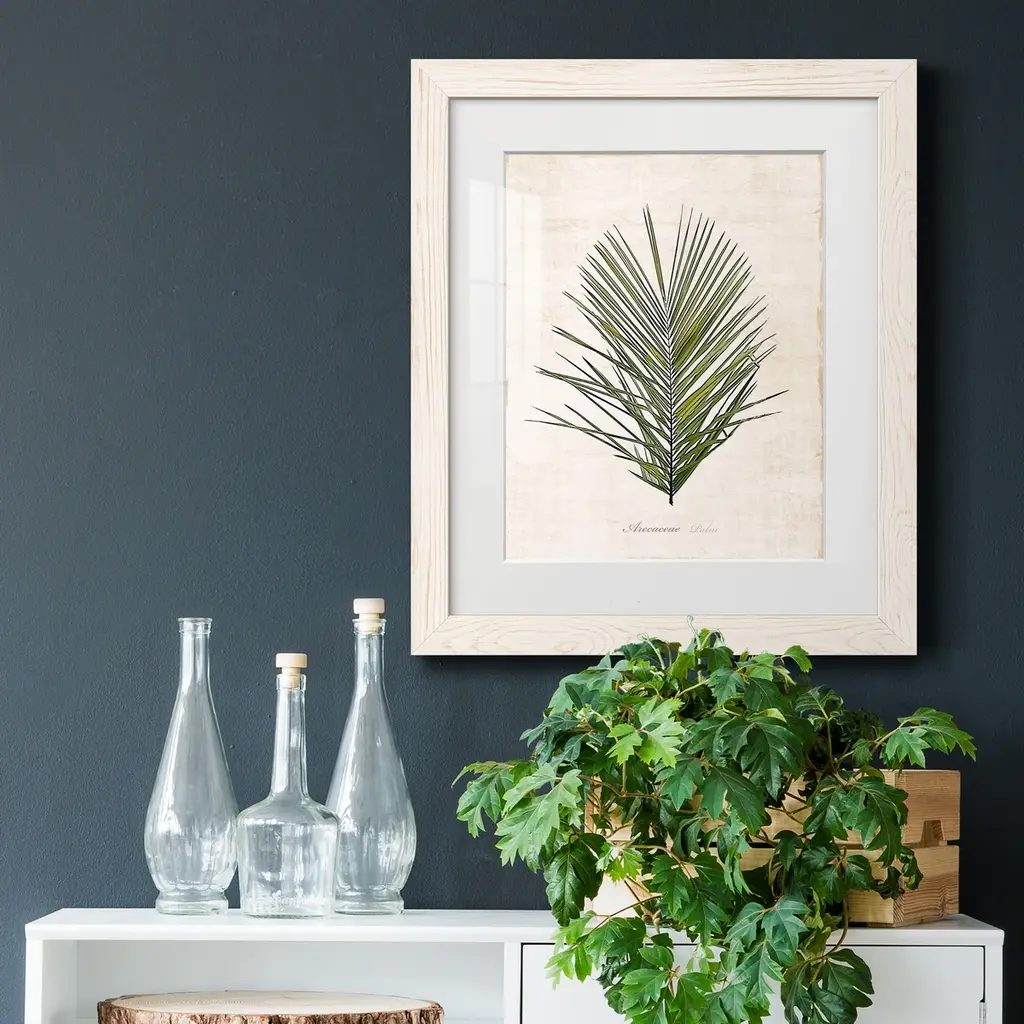 Palm Botanical I-Premium Framed Print - Ready to Hang Framed in distressed wood and available in an array of sizes and colors Each piece is joined and assembled by hand and comes ready to hang 2 INCH BEVELED MATTE BOARD PLEXIGLASS COVERING READY TO HANG MADE IN THE USA SOLID WOOD FRAME MADE IN USA FADE RESISTANT GICLEE PRINTING on Canvas or Paper