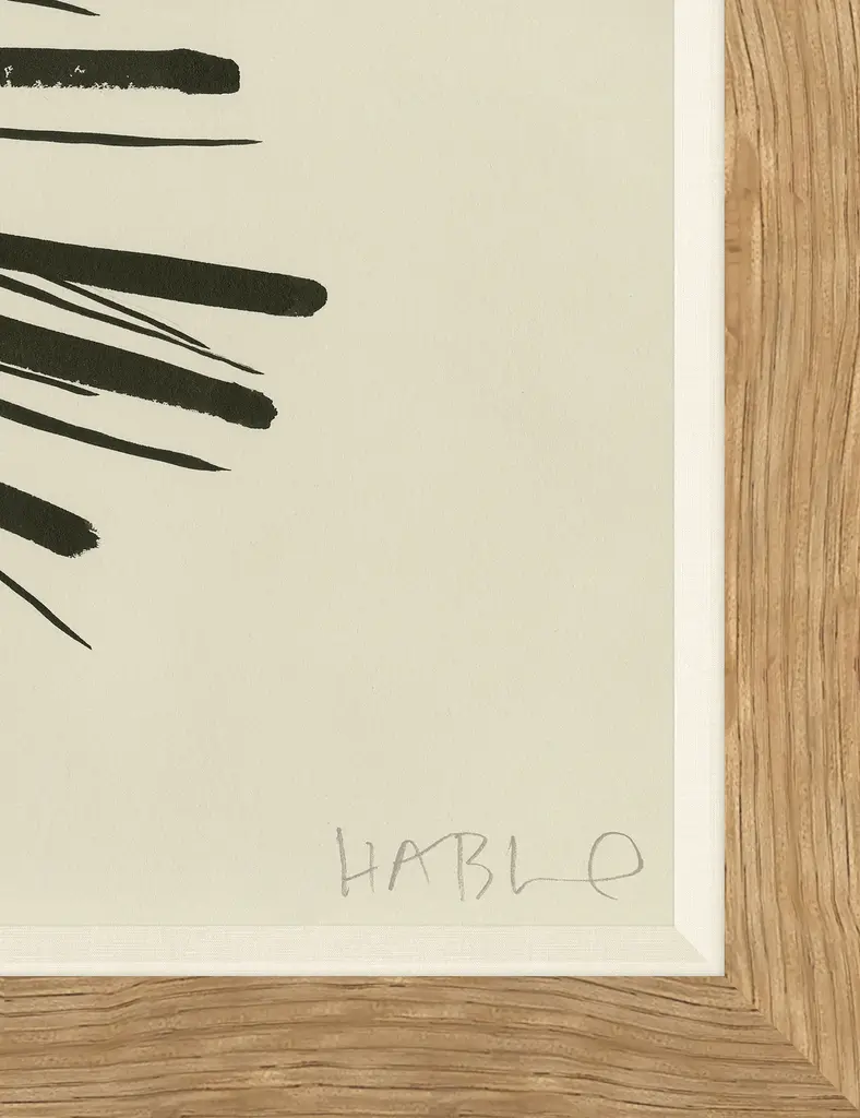 Create a point of impact when you walk into the room with this minimalist artwork by Susan Hable. The palm fronds in silhouette bring a fresh botanical feel that fits perfectly in spaces where nature and refined design sit in balance. The contrasting tones and clean composition bring a modern edge to any wall art collection.