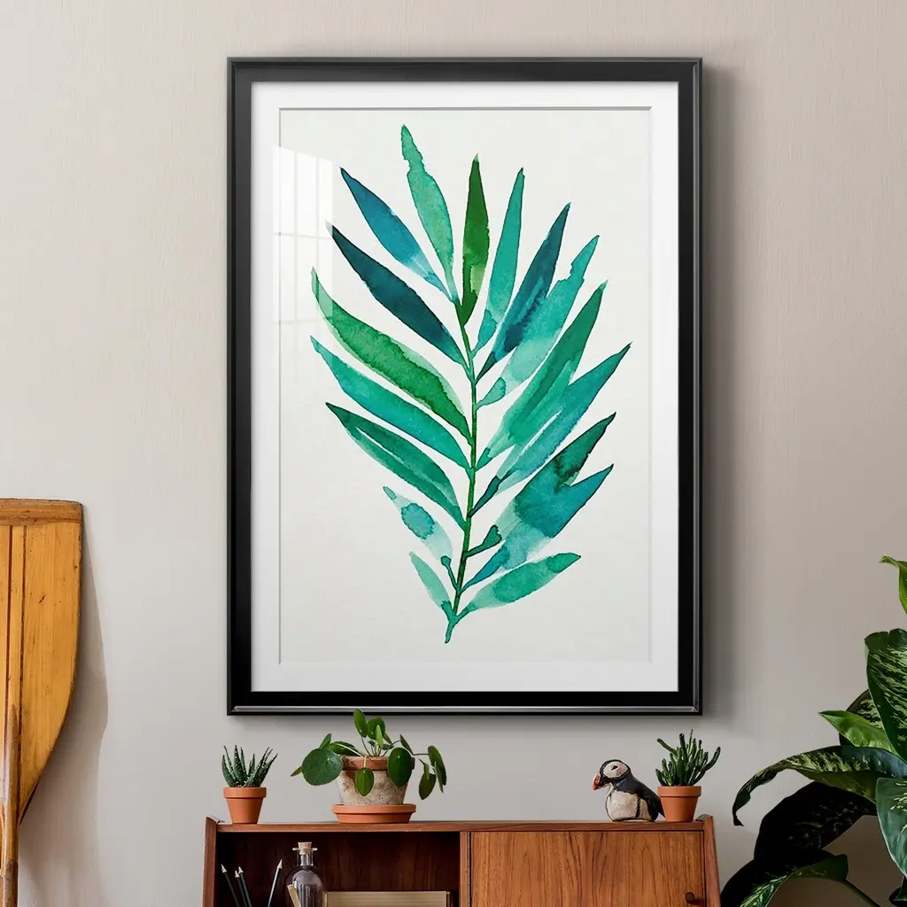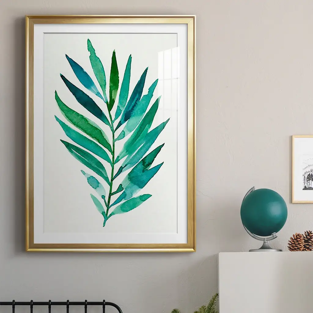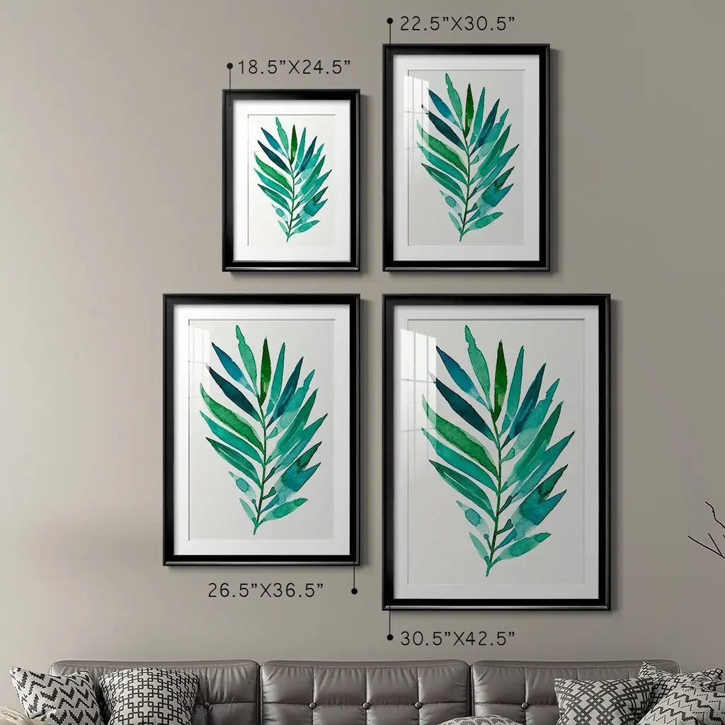 Palm Frond Flow I Premium Framed Print - Ready to Hang A Premium Framed Print created to last. Framed in distressed wood and available in an array of sizes and colors Featuring a beveled a solid wood stretcher bar, each piece comes ready to hand 4 SIZES AVAILABLE 30.5''X42.5'' - Overall Size 26.5'X36.5'' - Overall Size 22.5''x30.5'' - Overall Size 18.5''x24.5'' - Overall Size Each piece is made to order. Each piece comes with hanging hardware. Made in the USA Ready to Hang Giclee Paper Print Acrylic Glass Beveled Matt Board