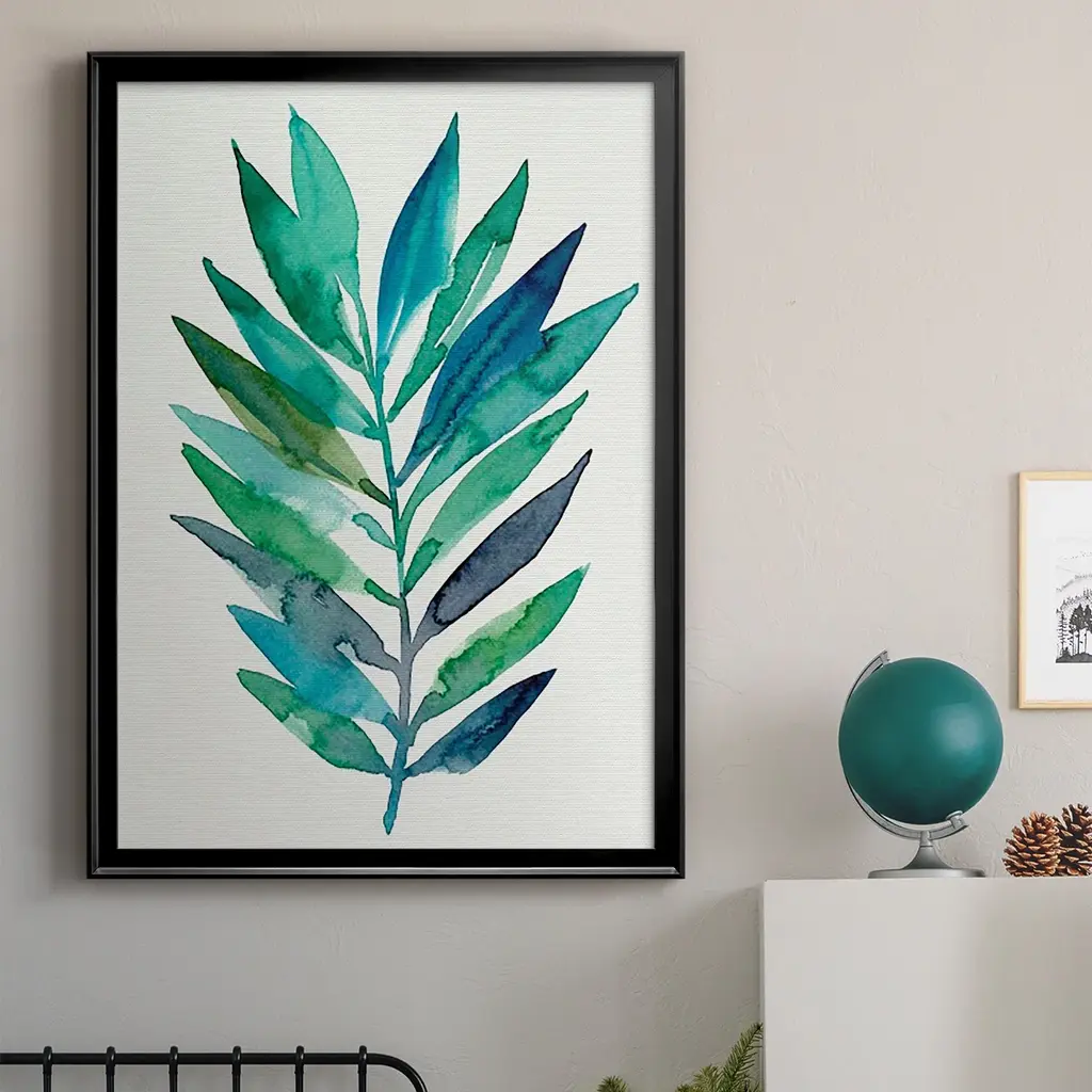 Palm Frond Flow II Premium Framed Print - Ready to Hang A Premium Framed Print created to last. Framed in distressed wood and available in an array of sizes and colors Featuring a beveled a solid wood stretcher bar, each piece comes ready to hand 4 SIZES AVAILABLE 30.5''X42.5'' - Overall Size 26.5'X36.5'' - Overall Size 22.5''x30.5'' - Overall Size 18.5''x24.5'' - Overall Size Each piece is made to order. Each piece comes with hanging hardware. Made in the USA Ready to Hang