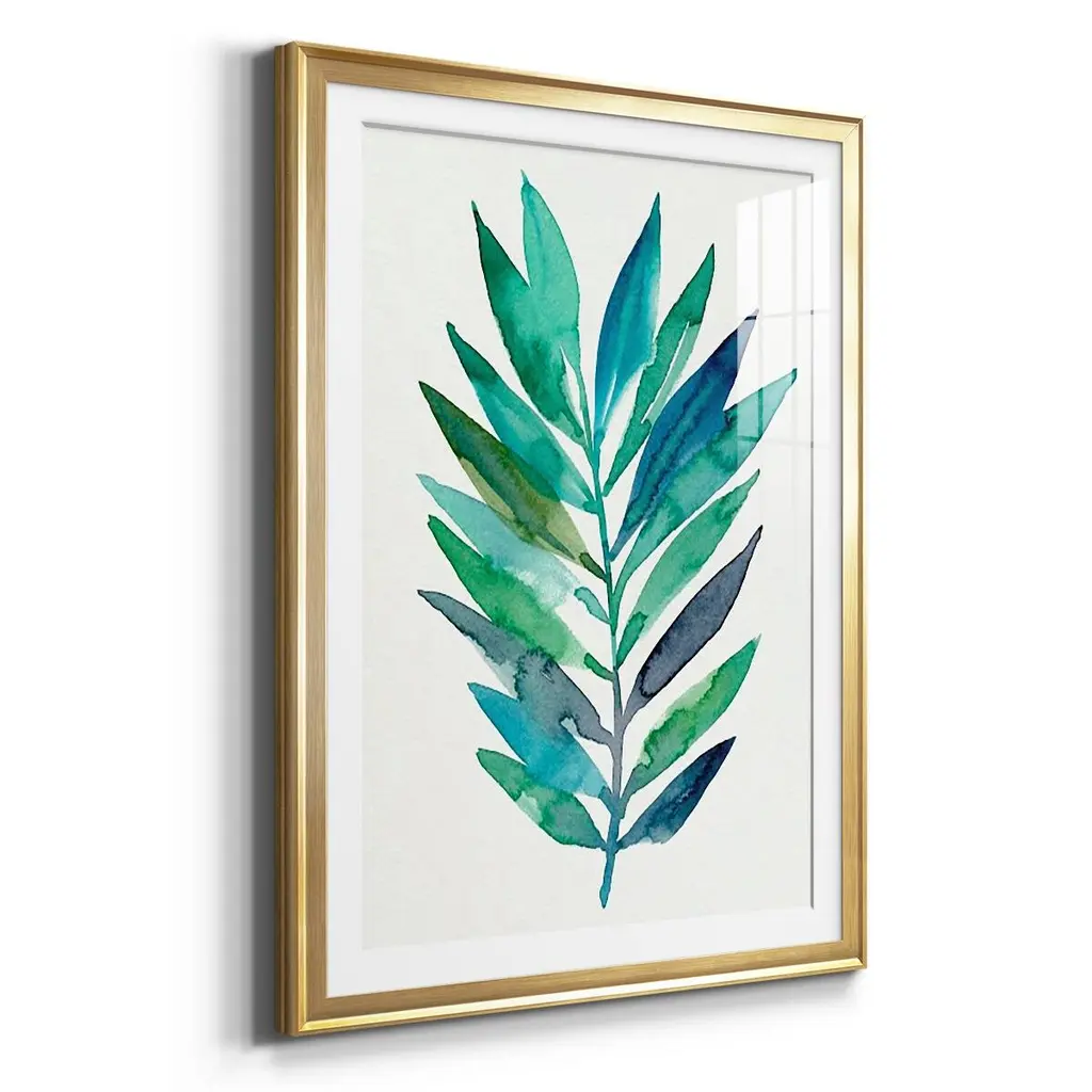 Palm Frond Flow II Premium Framed Print - Ready to Hang A Premium Framed Print created to last. Framed in distressed wood and available in an array of sizes and colors Featuring a beveled a solid wood stretcher bar, each piece comes ready to hand 4 SIZES AVAILABLE 30.5''X42.5'' - Overall Size 26.5'X36.5'' - Overall Size 22.5''x30.5'' - Overall Size 18.5''x24.5'' - Overall Size Each piece is made to order. Each piece comes with hanging hardware. Made in the USA Ready to Hang Giclee Paper Print Acrylic Glass Beveled Matt Board