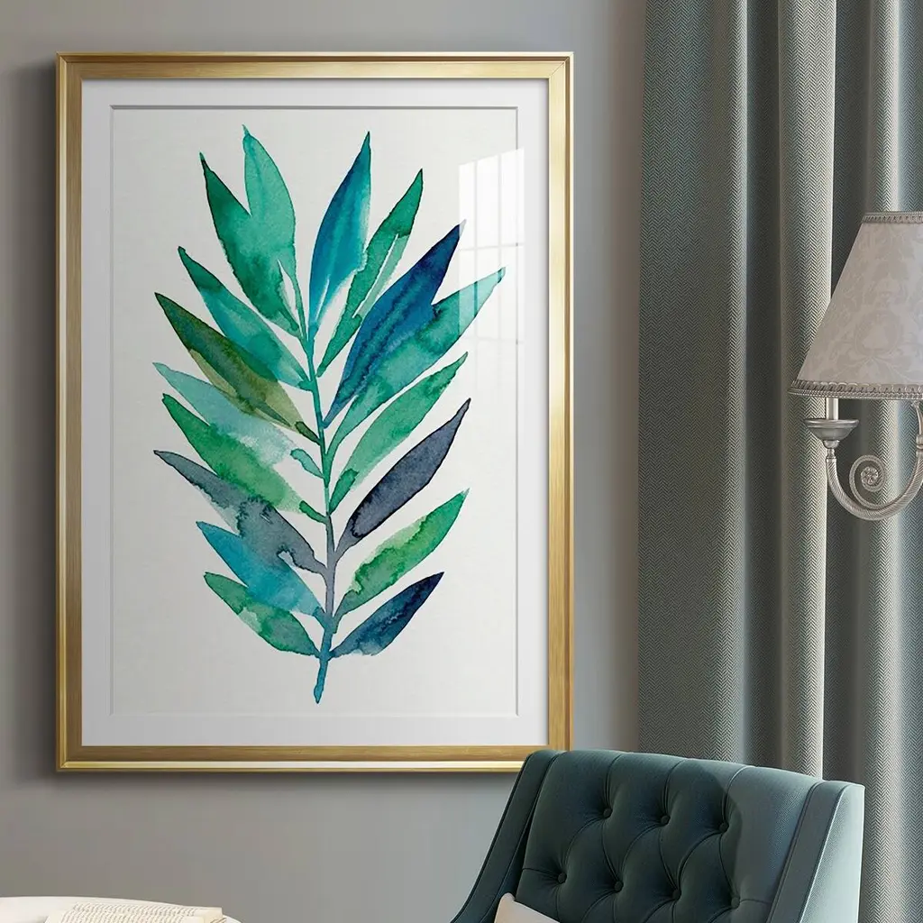 Palm Frond Flow II Premium Framed Print - Ready to Hang A Premium Framed Print created to last. Framed in distressed wood and available in an array of sizes and colors Featuring a beveled a solid wood stretcher bar, each piece comes ready to hand 4 SIZES AVAILABLE 30.5''X42.5'' - Overall Size 26.5'X36.5'' - Overall Size 22.5''x30.5'' - Overall Size 18.5''x24.5'' - Overall Size Each piece is made to order. Each piece comes with hanging hardware. Made in the USA Ready to Hang Giclee Paper Print Acrylic Glass Beveled Matt Board