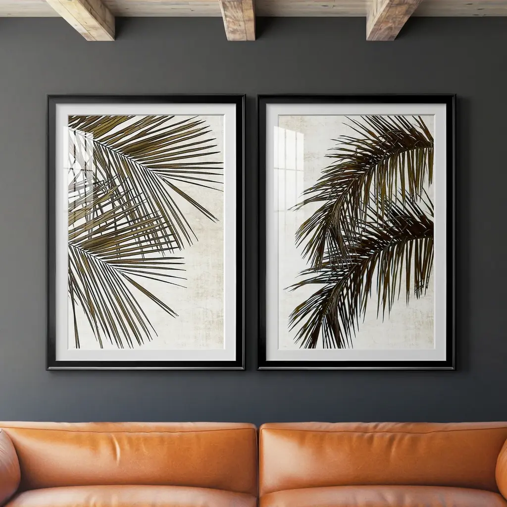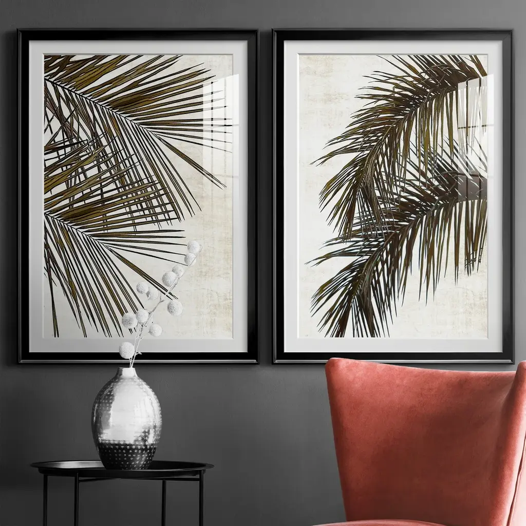 Palm I Premium Framed Print - Ready to Hang A Premium Framed Print created to last. Framed in distressed wood and available in an array of sizes and colors Featuring a beveled a solid wood stretcher bar, each piece comes ready to hand 4 SIZES AVAILABLE 30.5''X42.5'' - Overall Size 26.5'X36.5'' - Overall Size 22''x30'' - Overall Size 18''x24'' - Overall Size Each piece is made to order. Each piece comes with hanging hardware. Made in the USA Ready to Hang Giclee Paper Print Acrylic Glass Beveled Matt Board