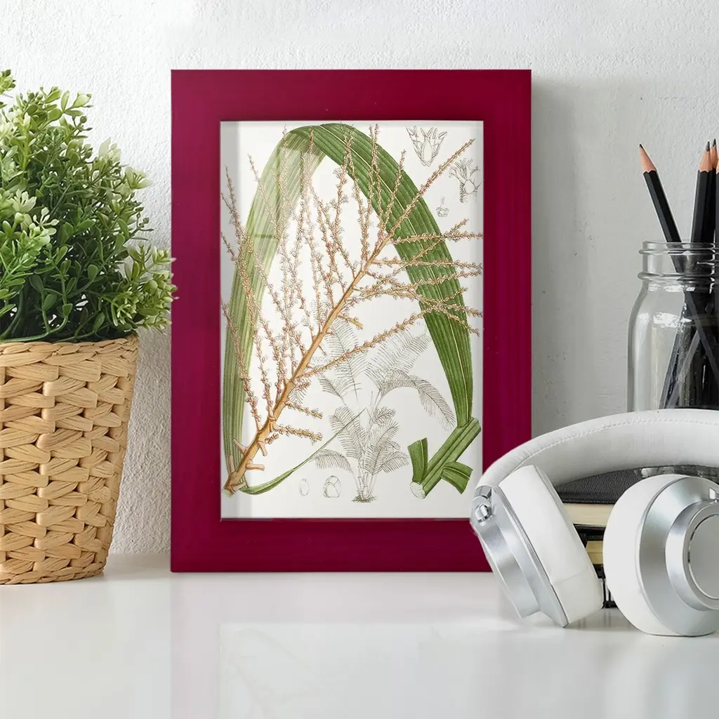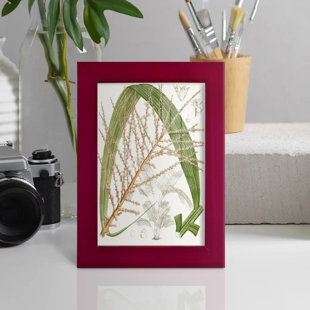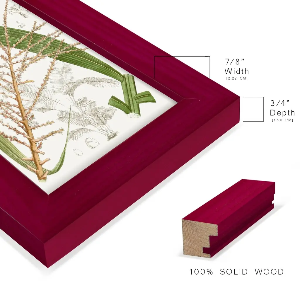 Palm Melange VII -EZ SWITCH Framed Print w/glass-Cherry Red A delightful, framed print. Featuring a solid wood frame with real wood glass. This premium print is giclee quality. In addition, every frame features a removable back and table top stand. This allows you to change your art in the future or to just stand the art on a table for a new look. We are sure you'll enjoy our new series of EZ SWITCH Framed Art. Solid Wood Frame Real Glass Removable / Replaceable Art Built in Tabletop Stand Sizes range from 4x6 up to 12x15 - buy just one or pair them up as sets as you see fit.