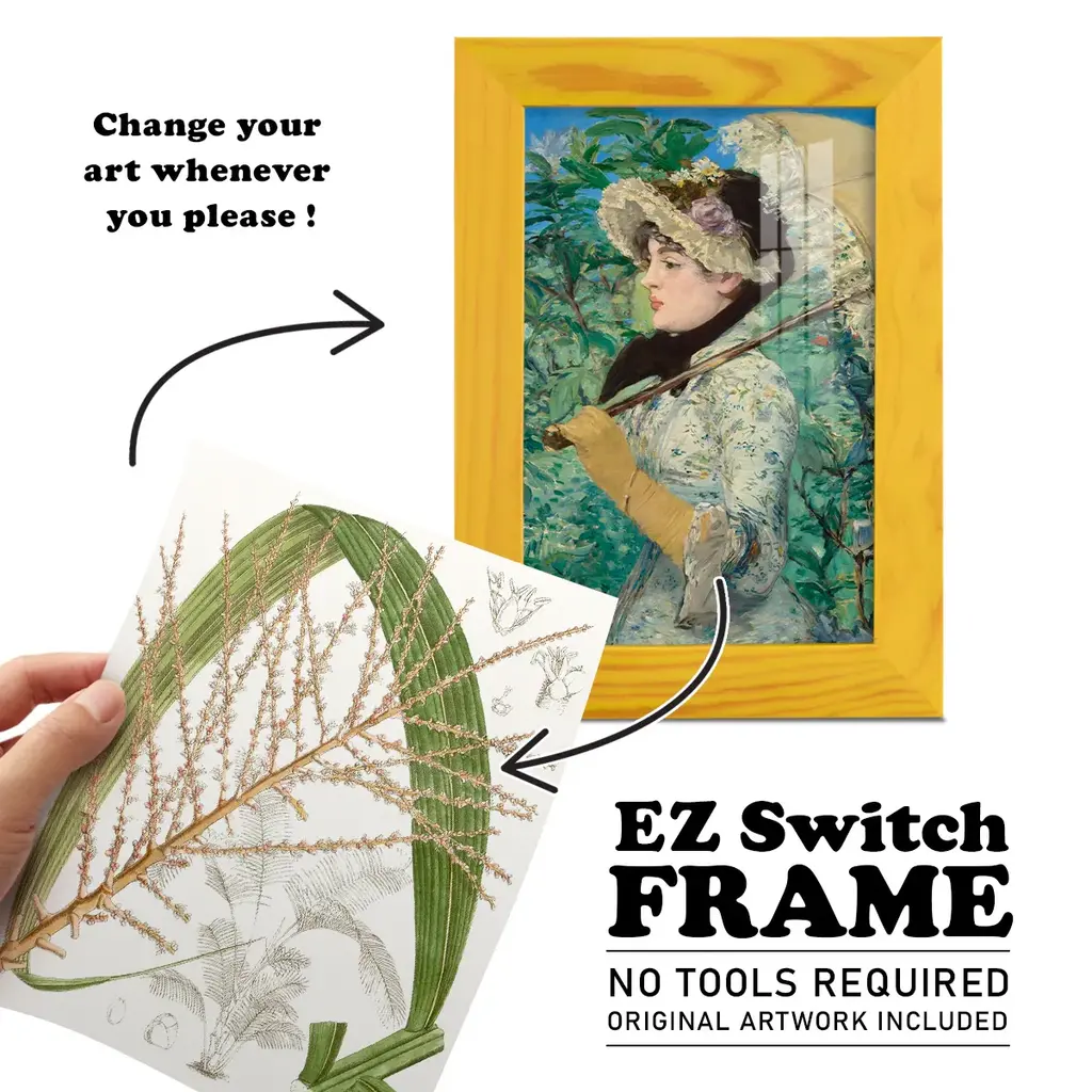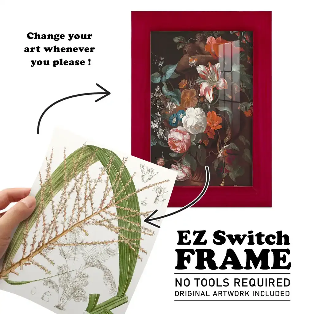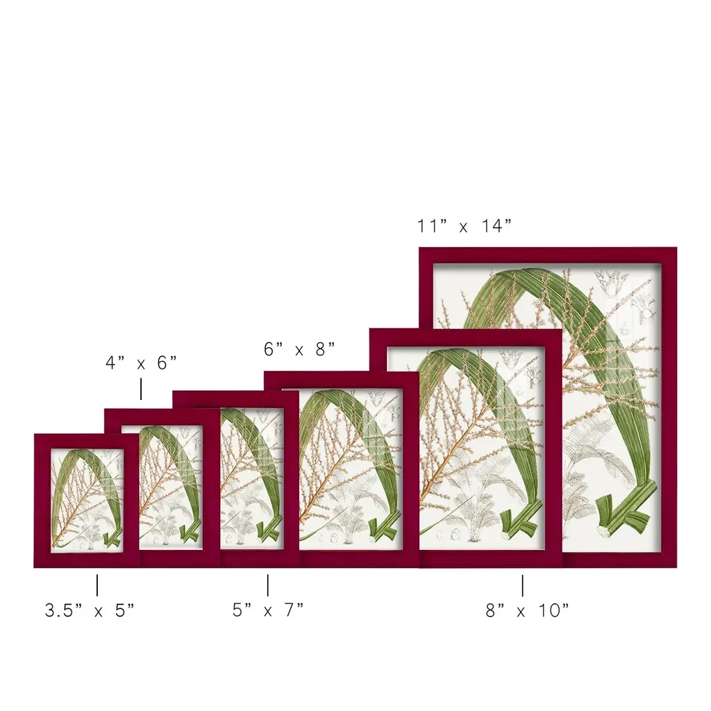 Palm Melange VII -EZ SWITCH Framed Print w/glass-Cherry Red A delightful, framed print. Featuring a solid wood frame with real wood glass. This premium print is giclee quality. In addition, every frame features a removable back and table top stand. This allows you to change your art in the future or to just stand the art on a table for a new look. We are sure you'll enjoy our new series of EZ SWITCH Framed Art. Solid Wood Frame Real Glass Removable / Replaceable Art Built in Tabletop Stand Sizes range from 4x6 up to 12x15 - buy just one or pair them up as sets as you see fit.