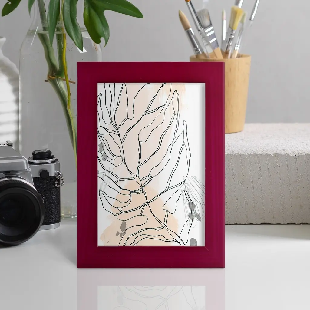 Palm Sketchbook IV -EZ SWITCH Framed Print w/glass-Cherry Red A delightful, framed print. Featuring a solid wood frame with real wood glass. This premium print is giclee quality. In addition, every frame features a removable back and table top stand. This allows you to change your art in the future or to just stand the art on a table for a new look. We are sure you'll enjoy our new series of EZ SWITCH Framed Art. Solid Wood Frame Real Glass Removable / Replaceable Art Built in Tabletop Stand Sizes range from 4x6 up to 12x15 - buy just one or pair them up as sets as you see fit.