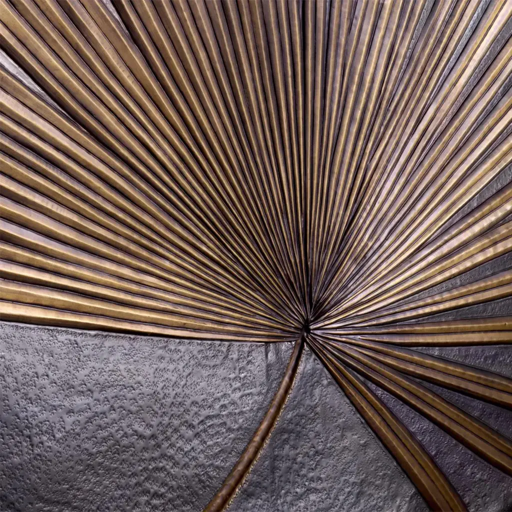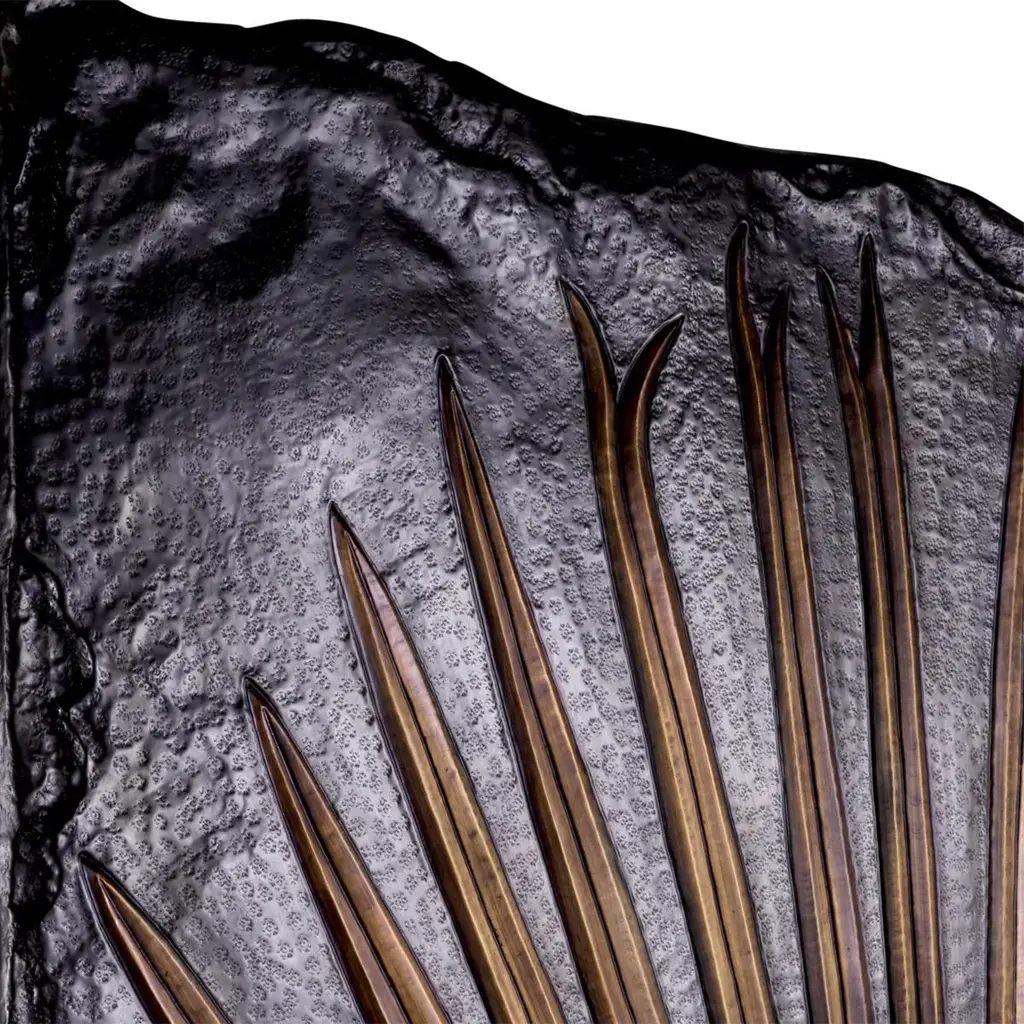 Wall Decoration Palm Tree Leaf with iron structurein bronze finish and with carved palm leaf in brassin antique finish.