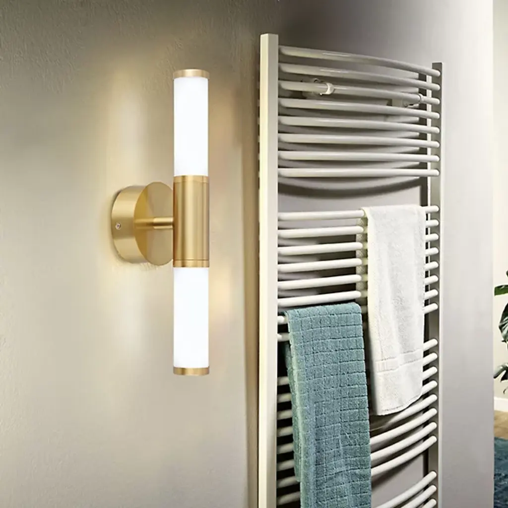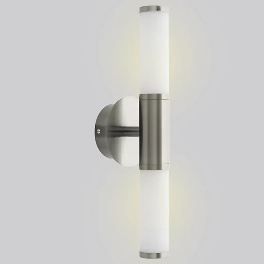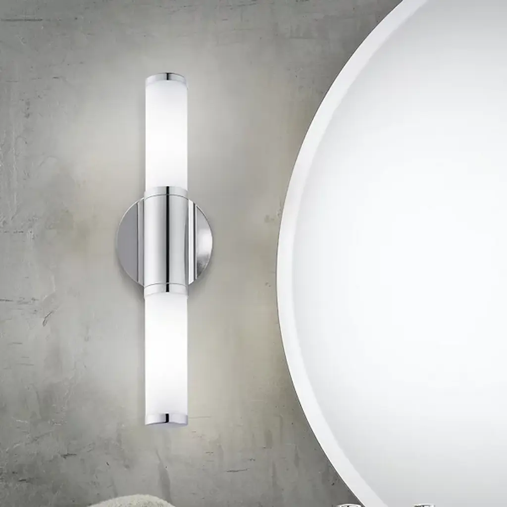 A sensational new style for bath and vanity spaces. The Palmera 1 LED Vanity Light by Eglo is crafted from a unique design vision that stands out in a variety of diverse interior design traditions. It showcases a tall duo of cylindrical glass diffuser shades in an up-down configuration that serves as its central focal point, both for its simplicity in design and the way it houses a vibrant LED light. That light fixture is housed in a stylish metal frame with a round cap piece to give it a complete look. It’s a wonderful way to give a unique impact to bathroom mirrors, vanity tables and tubs.