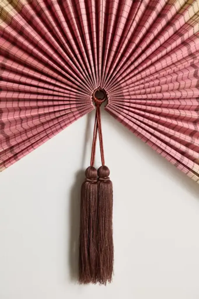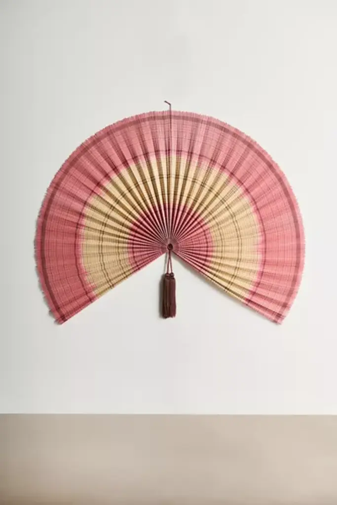 Whether you use it as a headboard, art piece or selfie spot, this oversized bamboo fan is a major standout. Fanned, accordion pleated construction folds for easy storage. Finished with triple tassel trim at center. Hanging hardware not included. Available exclusively at Urban Outfitters. **Features** \- Statement headboard from UO Home \- Oversized bamboo fan in an accordion pleat silhouette \- Finished with tassel trims \- Versatile - use it as a headboard, standout wall hanging or selfie spot \- UO exclusive **Content + Care** \- Hanging hardware not included \- Bamboo \- Wipe clean \- Imported **Size** \- Dimensions: 60"l x 60"h \- Folded dimensions: 30.7"l x 1.37"w \- Weight: 2 lbs \- Shipping package dimensions: 31.5"l x 3.15"w x 5.91"h \- Shipping package weight: 3 lbs