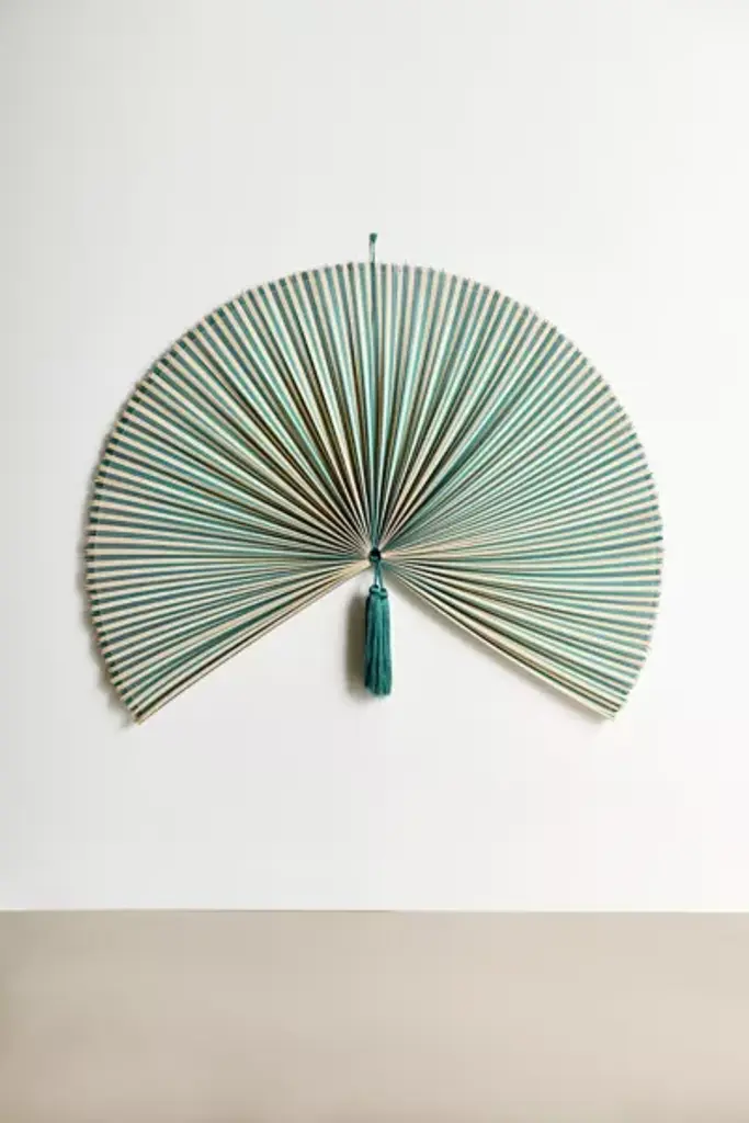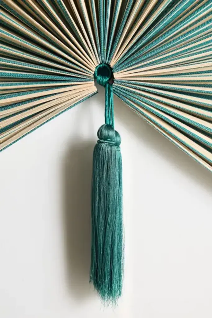 Whether you use it as a headboard, art piece or selfie spot, this oversized bamboo fan is a major standout. Fanned, accordion pleated construction folds for easy storage. Finished with triple tassel trim at center. Hanging hardware not included. Available exclusively at Urban Outfitters. **Features** \- Statement headboard from UO Home \- Oversized bamboo fan in an accordion pleat silhouette \- Finished with tassel trims \- Versatile - use it as a headboard, standout wall hanging or selfie spot \- UO exclusive **Content + Care** \- Hanging hardware not included \- Bamboo \- Wipe clean \- Imported **Size** \- Dimensions: 60"l x 60"h \- Folded dimensions: 30.7"l x 1.37"w \- Weight: 2 lbs \- Shipping package dimensions: 31.5"l x 3.15"w x 5.91"h \- Shipping package weight: 3 lbs