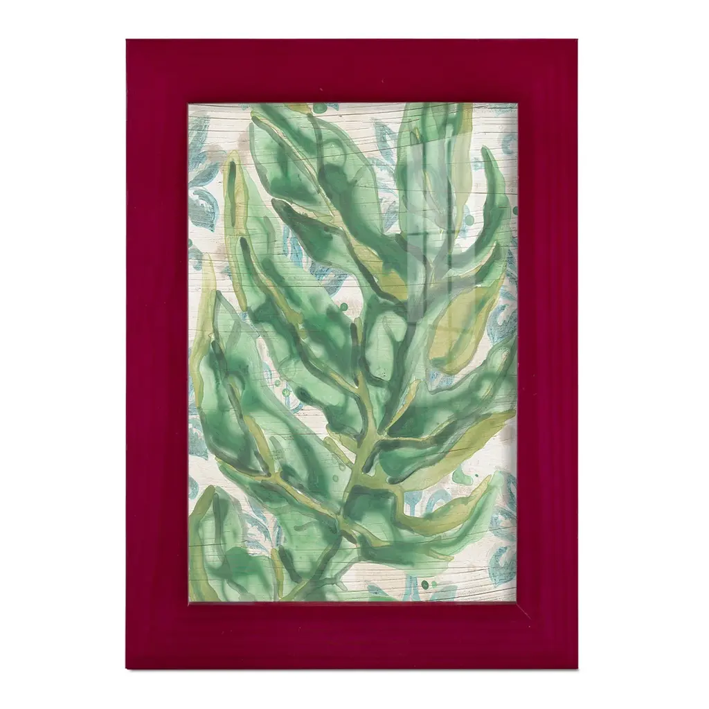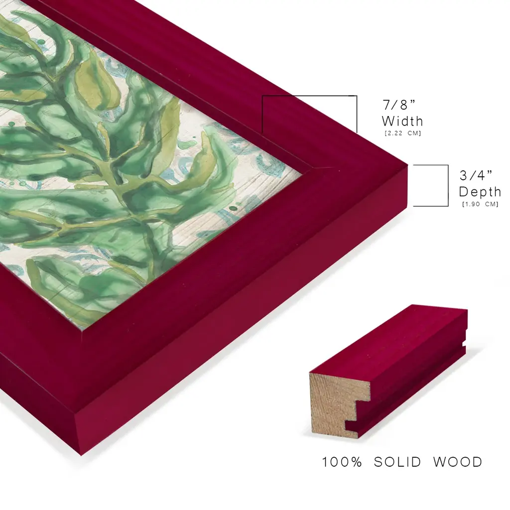 Palms & Patterns II -EZ SWITCH Framed Print w/glass-Cherry Red A delightful, framed print. Featuring a solid wood frame with real wood glass. This premium print is giclee quality. In addition, every frame features a removable back and table top stand. This allows you to change your art in the future or to just stand the art on a table for a new look. We are sure you'll enjoy our new series of EZ SWITCH Framed Art. Solid Wood Frame Real Glass Removable / Replaceable Art Built in Tabletop Stand Sizes range from 4x6 up to 12x15 - buy just one or pair them up as sets as you see fit.