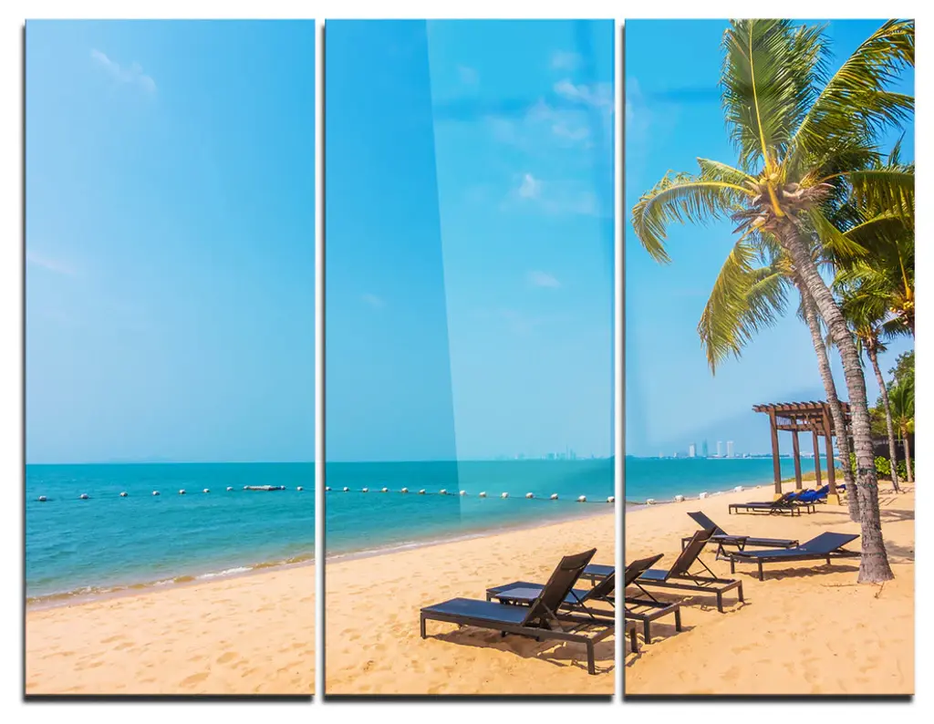 "Palms At Caribbean Beach" Photo Metal Wall Art, 3 Panels, 36"x28"