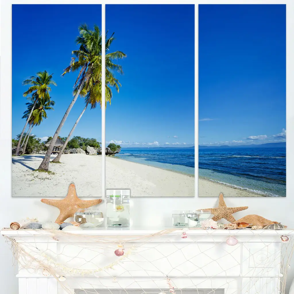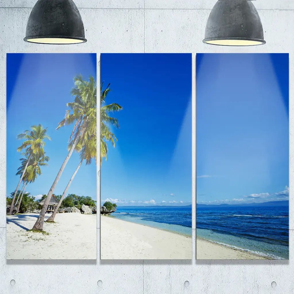 "Palms Bent To Beautiful Vacation Beach" Metal Wall Art, 3 Panels, 36"x28"