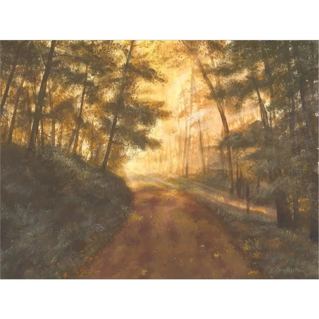 Golden Forest by Pam Britton is a high quality piece of framed artwork. The finished size of this piece is 28" x 23". It has a Rustic Weathered Chocolate Brown with Antique Silver Accent frame, White mat and is finished with high quality Acrylic Plexiglass. 100% Satisfaction Guaranteed.