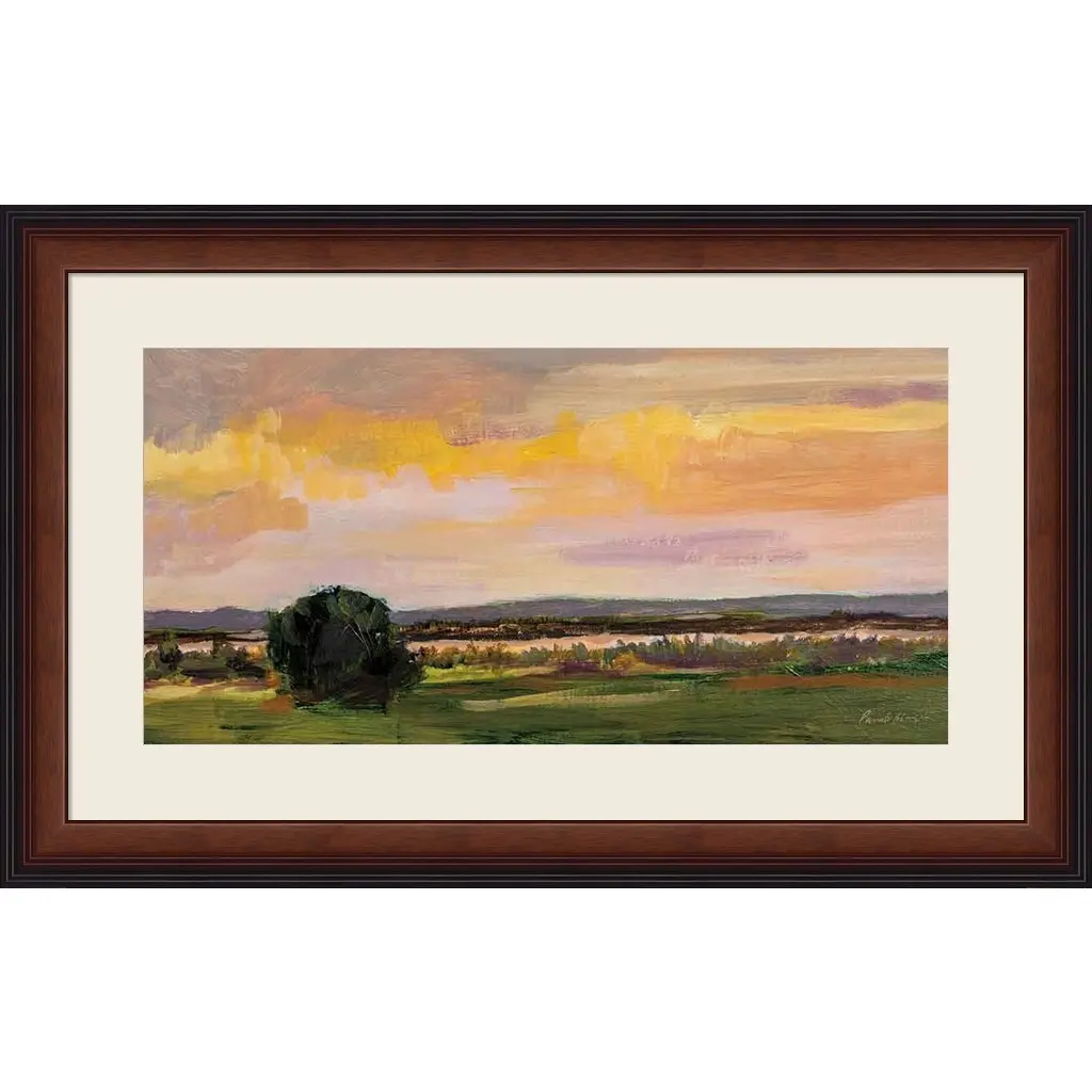 Dusk on Mesa by Pamela Munger is a high quality piece of framed artwork. The finished size of this piece is 32" X 20". It has a Brown Finish Stepped Front frame, is single matted and finished with high quality Acrylic Plexiglass. 100% Satisfaction Guaranteed.