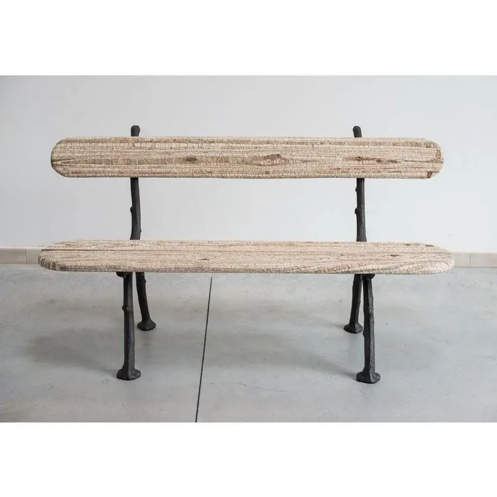Panchina camel antique bench by yukiko nagai dimensions: d55 x w152 x h85 cm material: iron, marble, natural stone, cement, stucco weight: 60 kg an old vintage bench made of iron and wood has been used as a subject for a new mosaic bench with wood’s grain. Wood aces are interpreted exclusively by the use of marble and stone. Mosaic draws the wood’s texture with its movement, vintage colore wood aged by the time is well represented by the tones of marble and stones. A stone bench recreates a never deteriorating wood. *all pieces are handmade, so the colours and shapes of the patterns may vary. * the chair used in this piece is a one-off antique. The price of the artwork may vary depending on the price of the chair. *bench lengths can be altered.