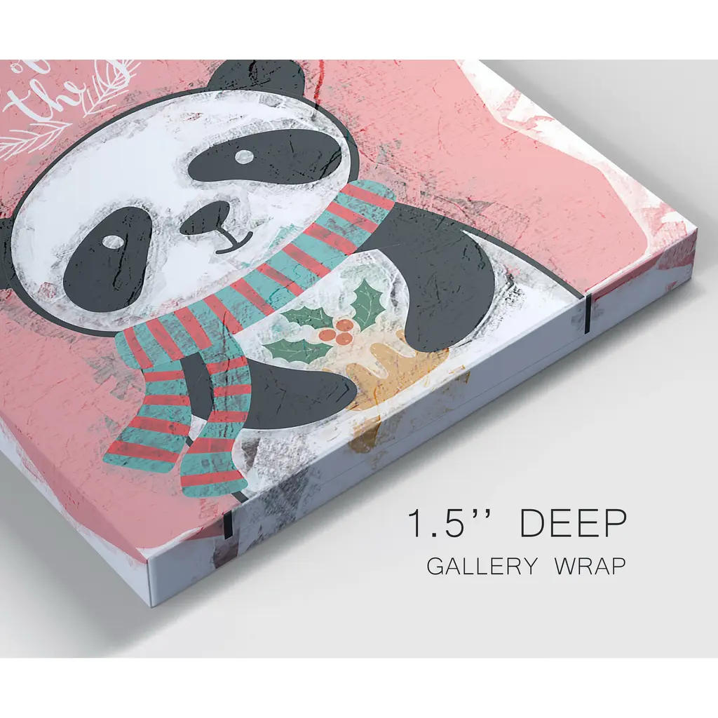 Panda Christmas-Premium Gallery Wrapped Canvas - Ready to Hang A premium hand stretched gallery wrapped canvas print created to last. Featuring a beveled a solid wood stretcher bar, each piece comes ready to hand 5 SIZES AVAILABLE 8''X12'' - Overall Size 16''x20'' - Overall Size 18''x27'' - Overall Size 24''x36'' - Overall Size 32''x48'' - Overall Size Each piece is made to order. Built to Last Each piece comes ready to hang Solid wood stretcher Fade and Water resistant Made domestically