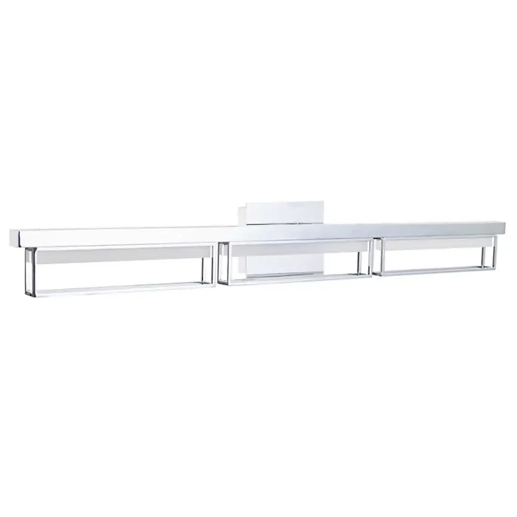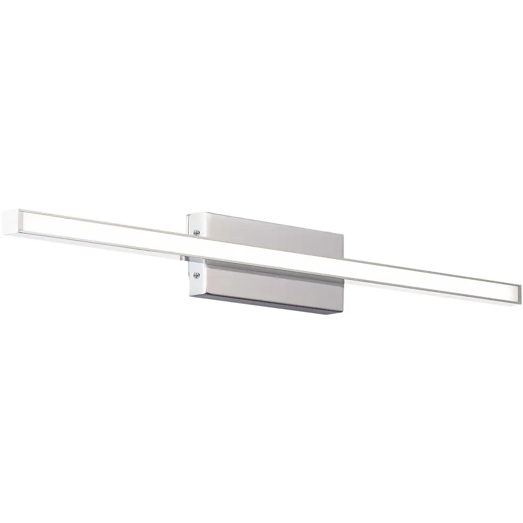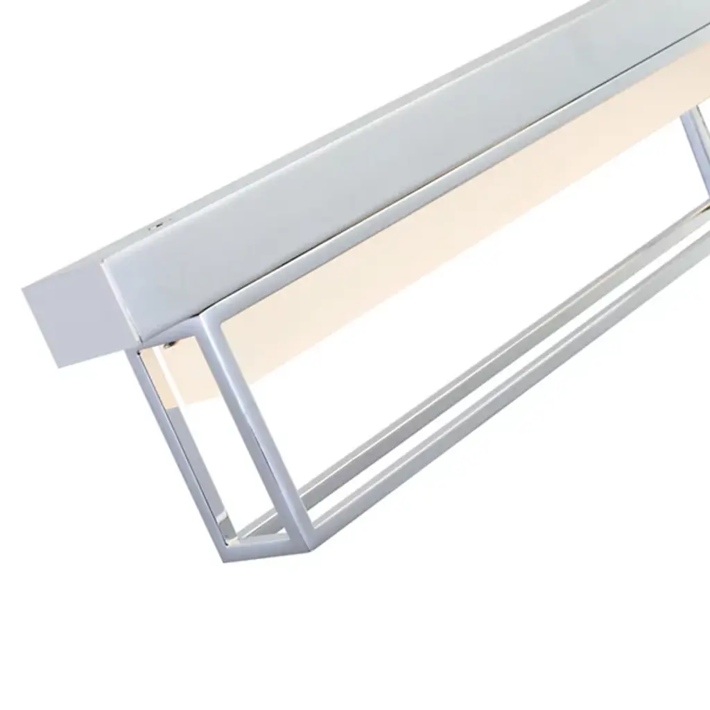 The Pane LED Vanity Light from Abra opens up with windows of alluring light. The vanity light’s layering of geometry adds depth in aesthetics to one’s room. It suggests a floating look by mounting with a low-profile and compact square backplate. The steel construction directs one’s eyes using a bold, neutral finish. Stages of rectilinear shapes set the stage for an opal glass diffuser nestled inside. This diffuser follows the long, uniform strand of LEDs that it contains. The LEDs paint the glass a golden color as they fan out a wide spread of flattering light.