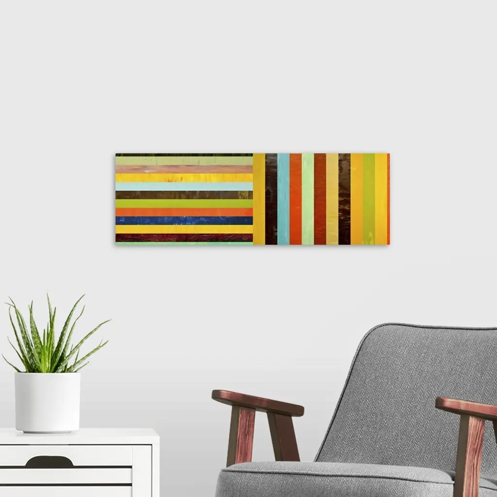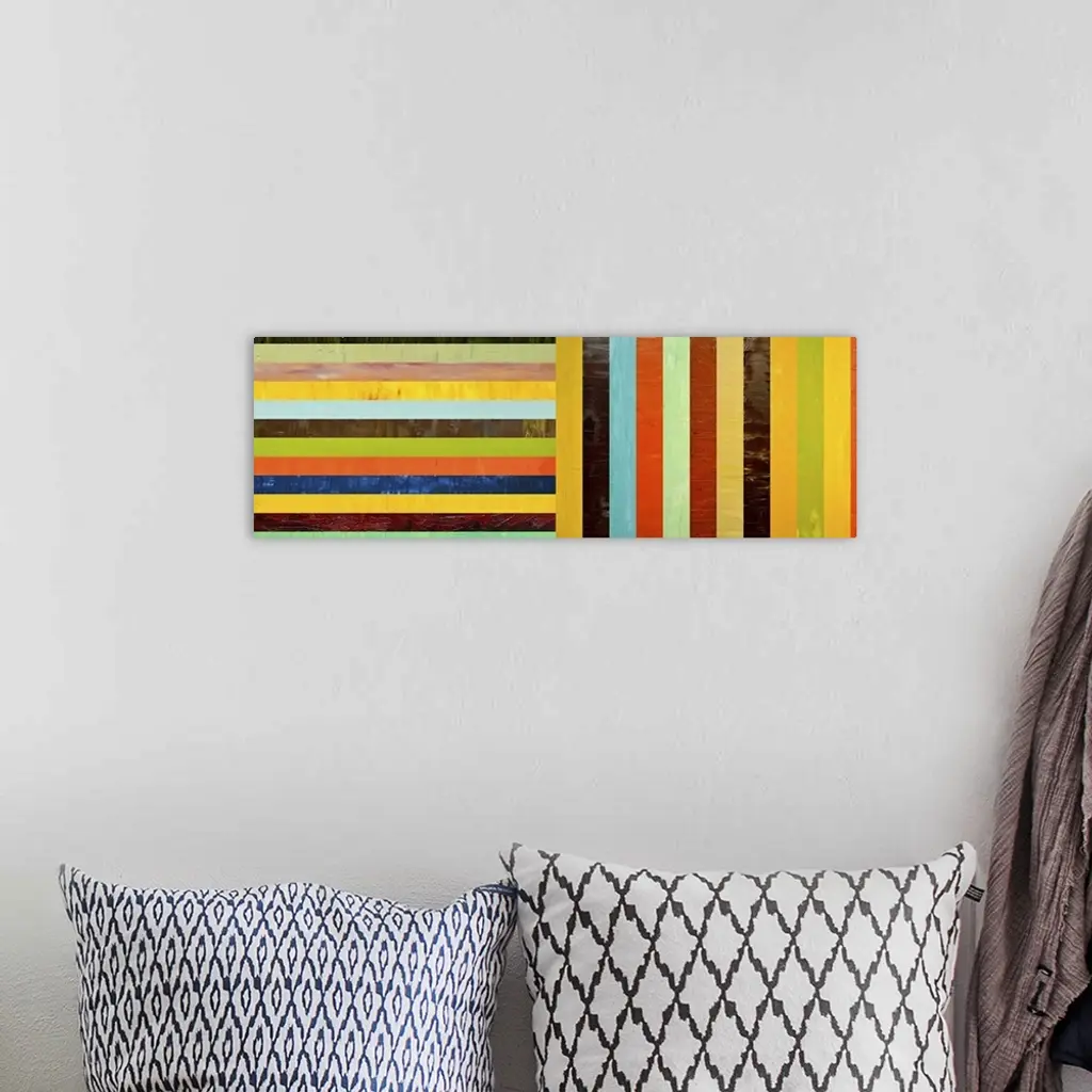 Contemporary geometric home decor artwork in various colors.