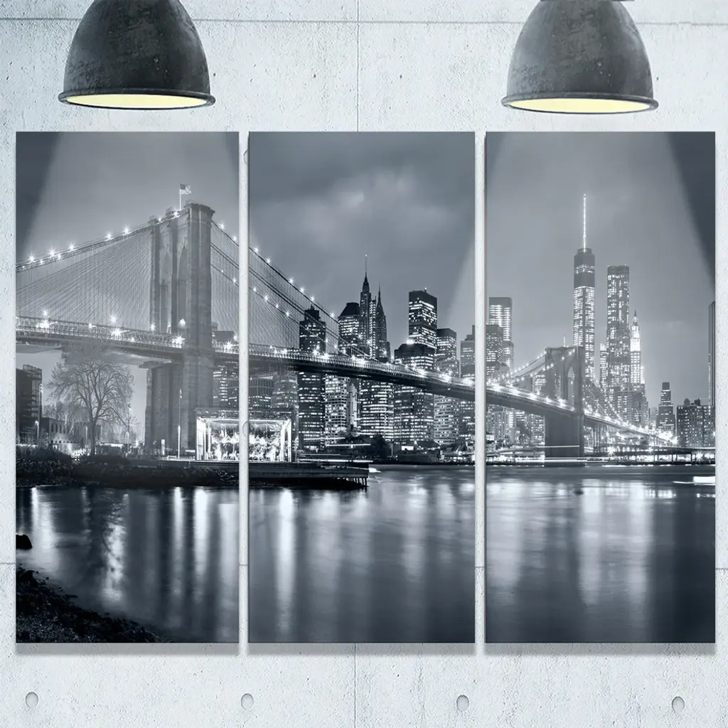 "Panorama New York City At Night" Metal Wall Art, 3 Panels, 36"x28"
