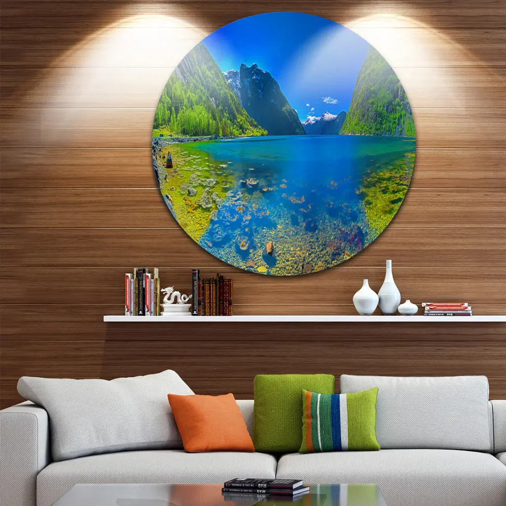 Bring Contemporary Abstraction to your home with this large Circle Metal wall art. This Panoramic View of Norwegian Fjord Metal Artwork makes it the focal point of any room or office. - White Gloss Coating ensures colors are extra vibrant with light reflection.- Aluminum grade Sheet Metal with 1 inch mounting frame on the back giving the illusion that the artwork is floating on the wall..- Mounting Brackets are included along with instructions.- High Quality Digital images are created directly into a glossy aluminum panel producing a stunning and captivating print into the glossy finish of the metal.- Water, Fire and Scratch resistant HD Aluminum panels.- Looks better than any photo paper and guaranteed to last at least 20 years- Easy to clean with a microfiber cloth. Colors are far superior to regular Canvas Art. - Easy to Hang