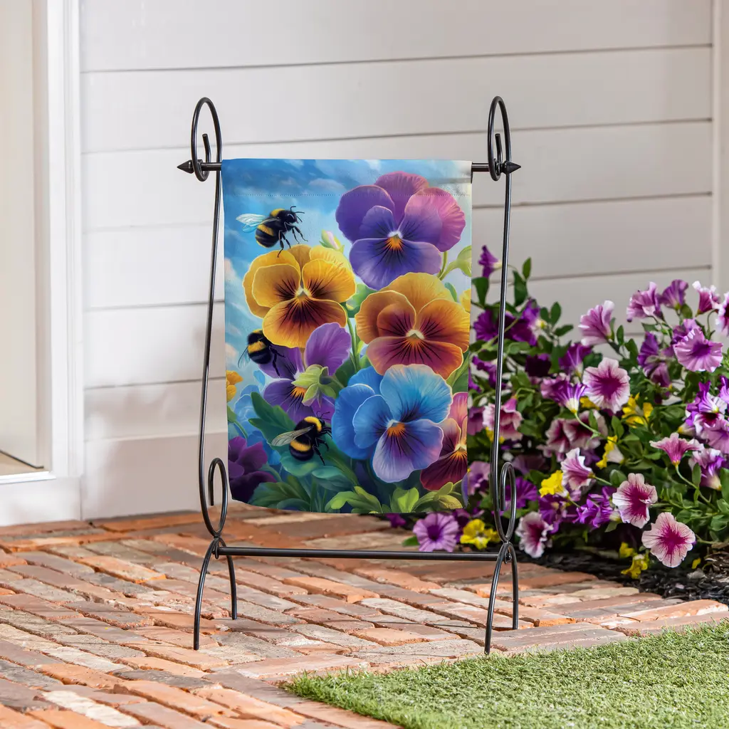 Bursting with bright colors and a detailed, lively design that adds beauty to any space, this flag is perfect for spring and beyond. Hang it in the garden to greet guests, neighbors, and friends. Flag is crafted of medium-weight suede fabric made from recycled plastic that provides a soft and durable texture. Artwork is heat transferred onto the sun-blocking material so that it is easily viewed from both sides. The weatherproof flag will not fray or fade with continued outdoor use. This flag features a sleeve for use with any standard flagpole or stand, sold separately.