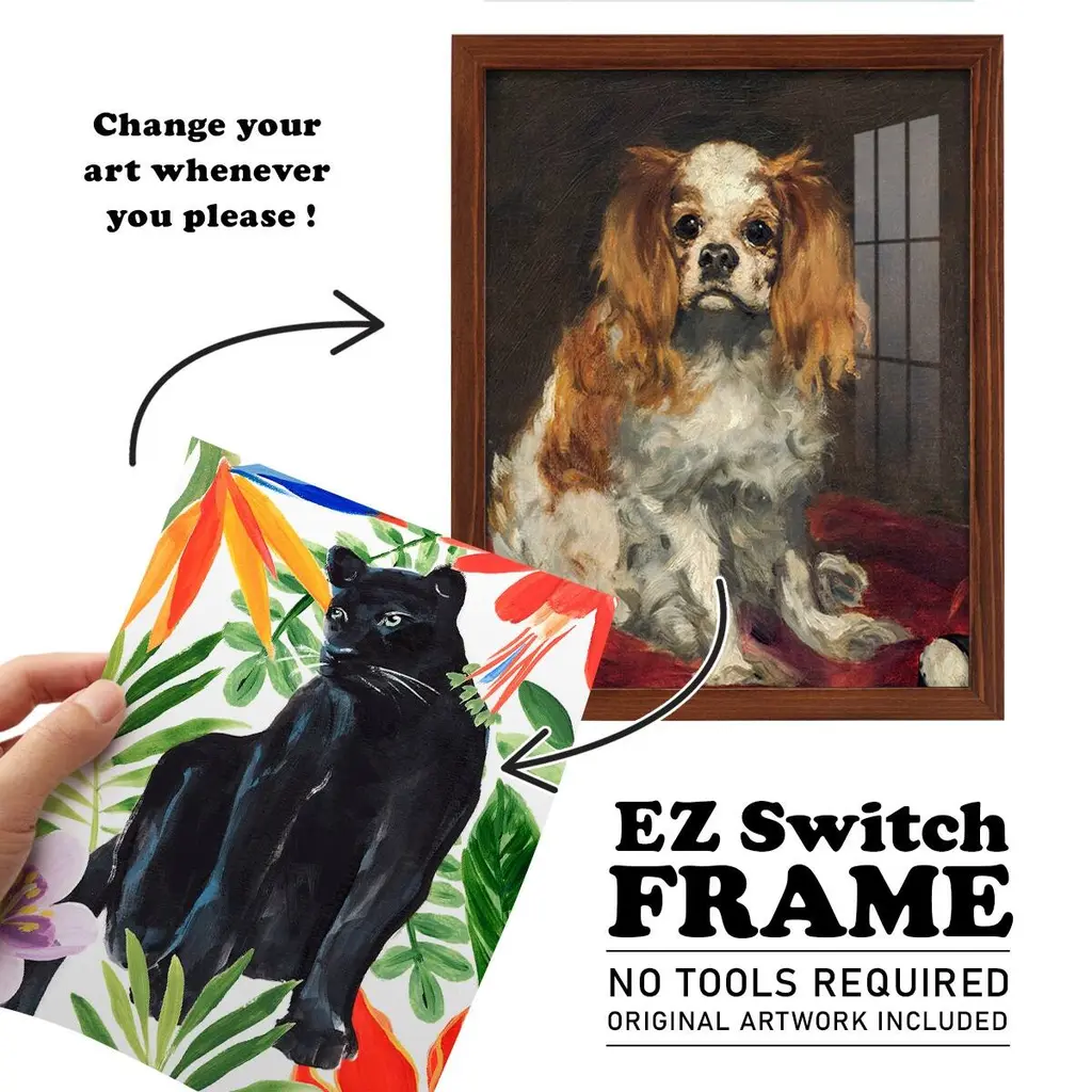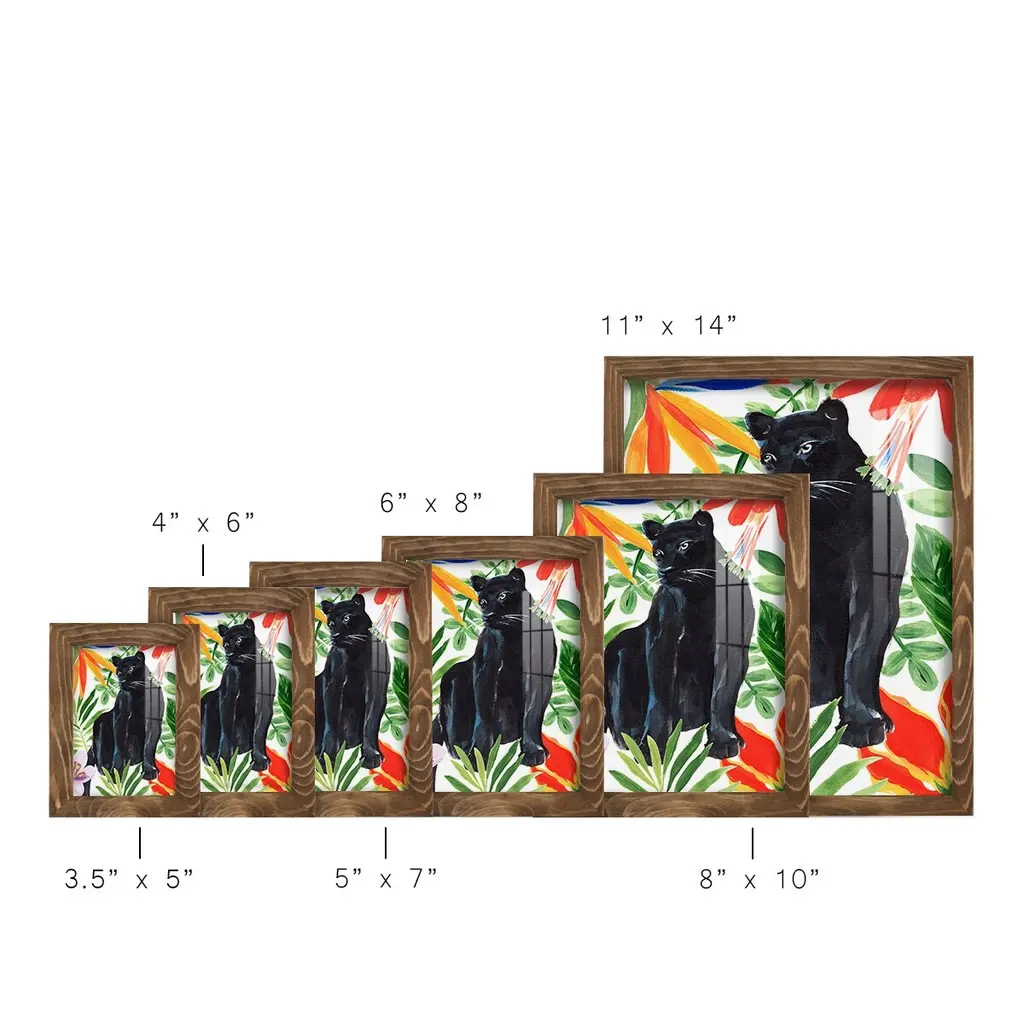 Panther's Paradise I -EZ SWITCH Framed Print w/glass-Cherry Red A delightful, framed print. Featuring a solid wood frame with real wood glass. This premium print is giclee quality. In addition, every frame features a removable back and table top stand. This allows you to change your art in the future or to just stand the art on a table for a new look. We are sure you'll enjoy our new series of EZ SWITCH Framed Art. Solid Wood Frame Real Glass Removable / Replaceable Art Built in Tabletop Stand Sizes range from 4x6 up to 12x15 - buy just one or pair them up as sets as you see fit.