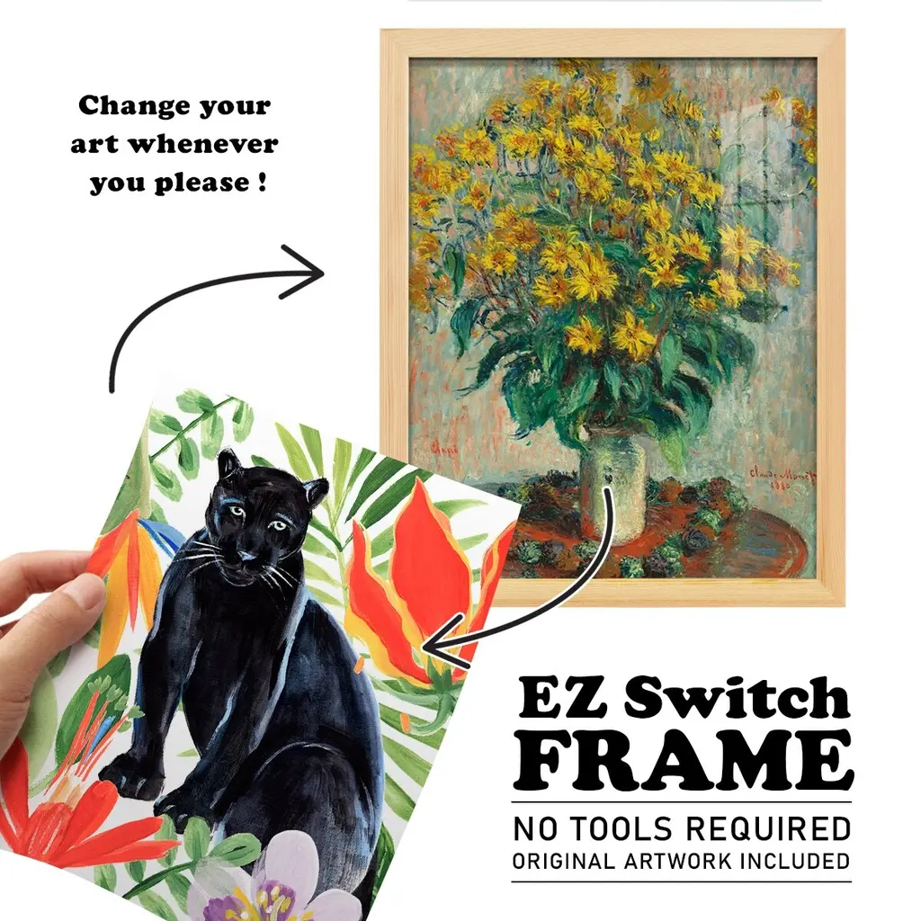 Panther's Paradise II -EZ SWITCH Framed Print w/glass-Cherry Red A delightful, framed print. Featuring a solid wood frame with real wood glass. This premium print is giclee quality. In addition, every frame features a removable back and table top stand. This allows you to change your art in the future or to just stand the art on a table for a new look. We are sure you'll enjoy our new series of EZ SWITCH Framed Art. Solid Wood Frame Real Glass Removable / Replaceable Art Built in Tabletop Stand Sizes range from 4x6 up to 12x15 - buy just one or pair them up as sets as you see fit.