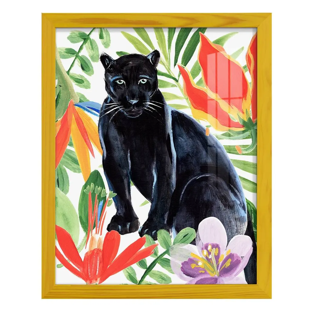 Panther's Paradise Ii -Framed Print W/glass-Cherry Red - 12x15 - Yellow