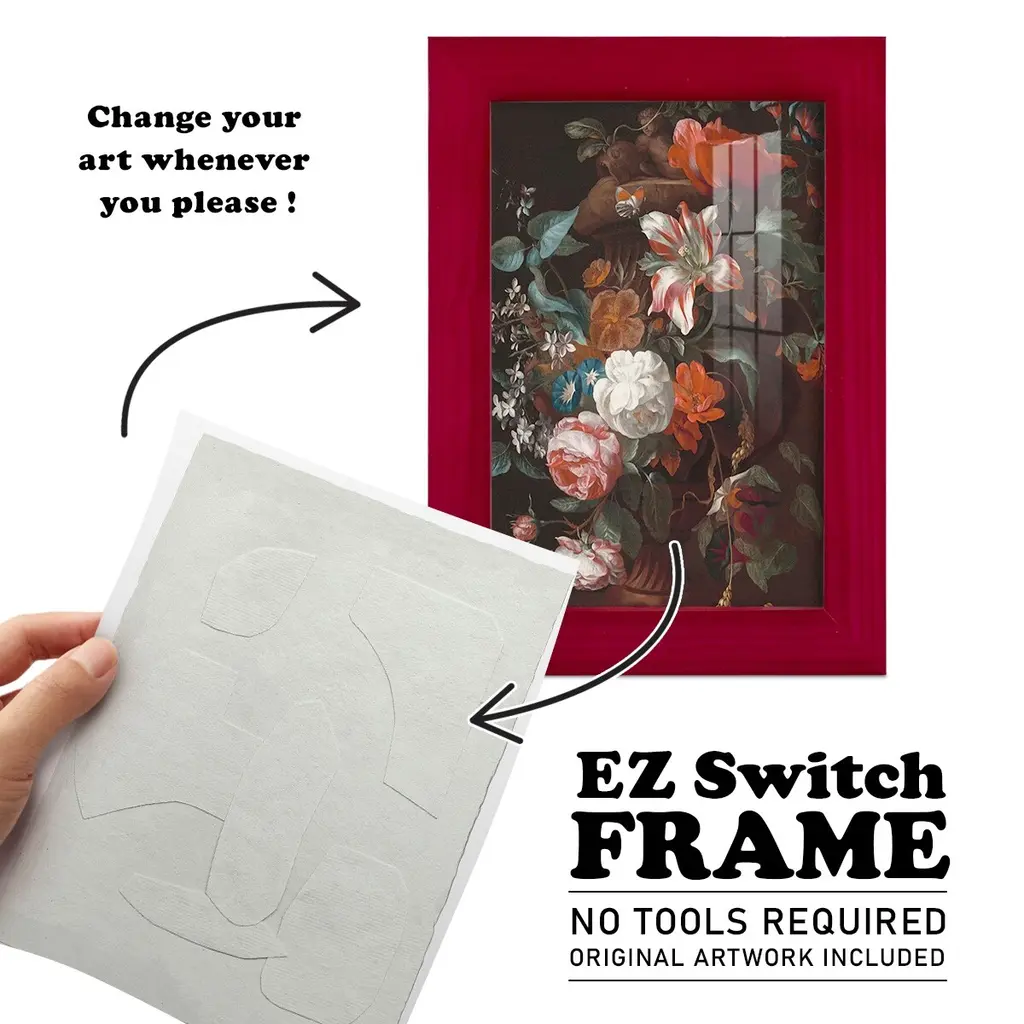 Paperwork III -EZ SWITCH Framed Print w/glass-Cherry Red A delightful, framed print. Featuring a solid wood frame with real wood glass. This premium print is giclee quality. In addition, every frame features a removable back and table top stand. This allows you to change your art in the future or to just stand the art on a table for a new look. We are sure you'll enjoy our new series of EZ SWITCH Framed Art. Solid Wood Frame Real Glass Removable / Replaceable Art Built in Tabletop Stand Sizes range from 4x6 up to 12x15 - buy just one or pair them up as sets as you see fit.