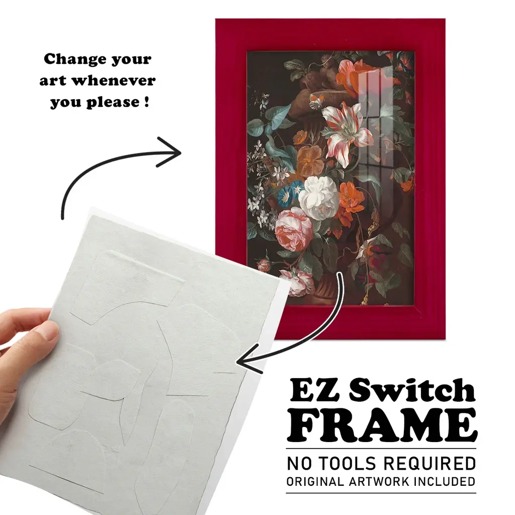 Paperwork IV -EZ SWITCH Framed Print w/glass-Cherry Red A delightful, framed print. Featuring a solid wood frame with real wood glass. This premium print is giclee quality. In addition, every frame features a removable back and table top stand. This allows you to change your art in the future or to just stand the art on a table for a new look. We are sure you'll enjoy our new series of EZ SWITCH Framed Art. Solid Wood Frame Real Glass Removable / Replaceable Art Built in Tabletop Stand Sizes range from 4x6 up to 12x15 - buy just one or pair them up as sets as you see fit.
