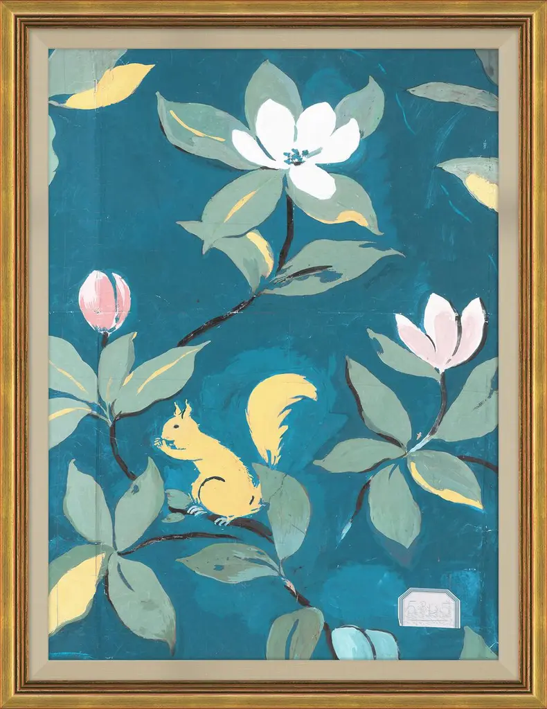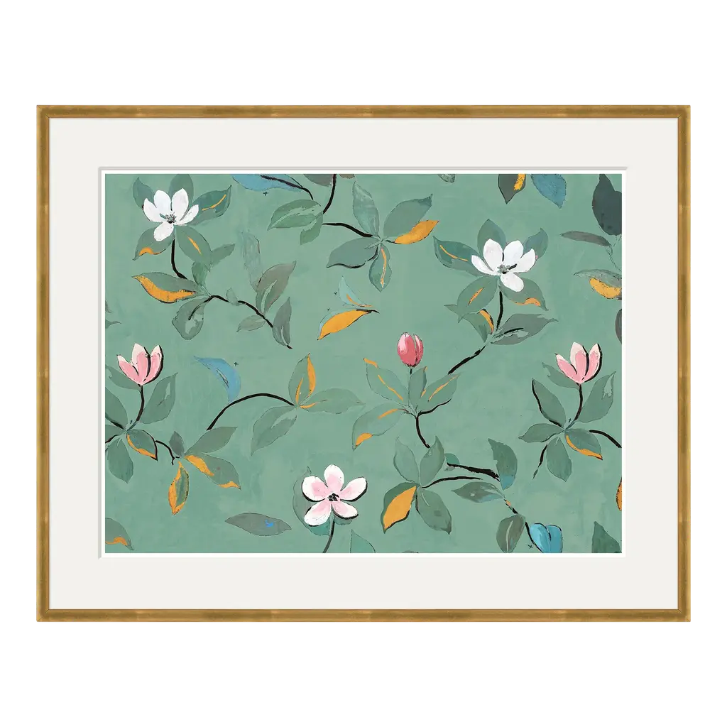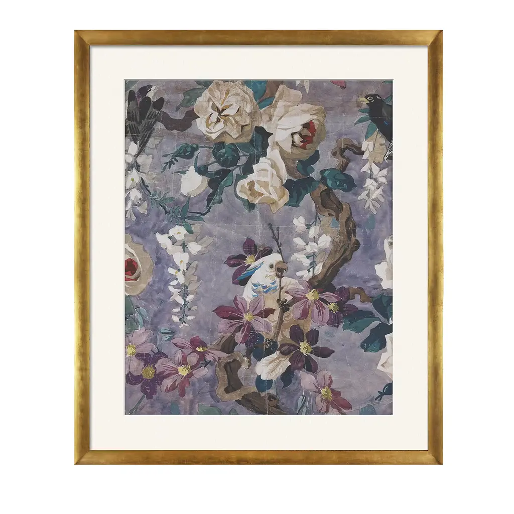 Pale pink Print with white passe-partout and frame in gold finishing.