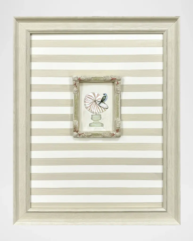 "Underwater Collage I" features a set of giclee prints on paper framed in gypsum plaster surrounded by acrylic-painted wood composite. Hand-embellished with acrylic paint, they're mounted in wood frames and ready to be hung on your wall. Overall, approx. 22"W x 2"D x 28"T each Wire attached to the back for hanging Hangs vertically Includes hanging hardware Wipe clean Weight, 20.0 lbs Set of two Made in USA Boxed weight, approximately 25.0 lbs Proposition 65 warning for California residents Shipping Direct from Vendor, usually ships within 30 business days. undefined