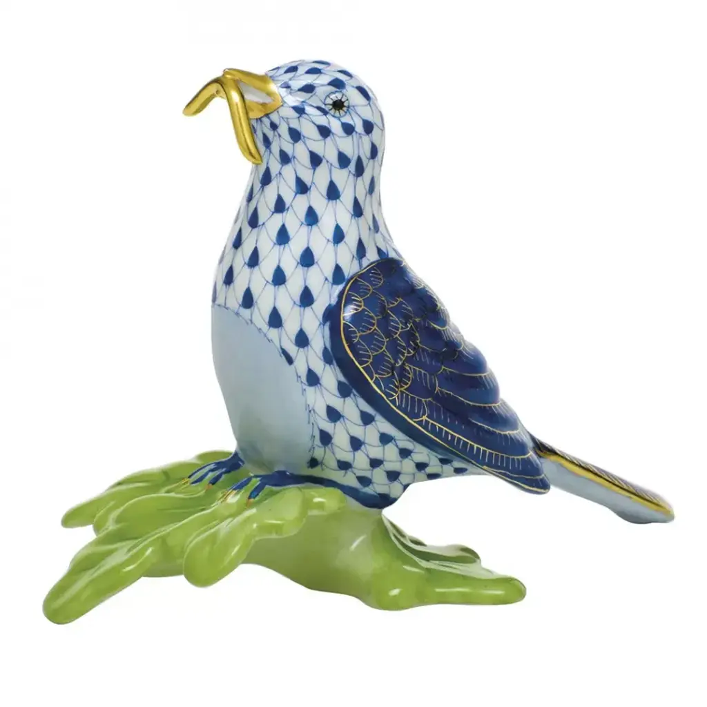 Endearing animals meek and bold, large and small, demure and majestic eagerly await the chance to melt your heart and warm your home. Each is brought to life by the skilled hands of artisans crafting and painting these charming porcelain creatures. The famous fishnet décor adorning many of the animals took form in 1858 when a Herend painter became inspired by a fishscale design he saw on a Chinese porcelain plate and painted a similar pattern onto a rooster figurine to imitate feathers. The rest is history, with the fishnet design now a Herend signature prized worldwide. Now the biggest porcelain manufactory in Europe, Herend was founded in 1826 to produce earthenware in the small Hungarian village for which it was named. At the time, Hungary was flooded with low-cost pottery, but in 1839, Mor Fischer became the Manufactory’s new owner and he decided to focus on producing dinnerware replacement pieces for Europe’s royal families to complement their valuable porcelain patterns from Germany and the Far East. As his client base grew, Fischer commissioned his artists to begin designing dinnerware patterns of their own. Queen Victoria’s 1851 purchase of a large set for Windsor Castle was a milestone, setting the stage for aristocrats throughout Europe to clamor for Herend in their estates. In the 1850s, Herend added meticulously-crafted figurines to its creations. Herend’s trademark fishnet pattern, which is widely recognized and prized as Herend’s signature design, started in 1858 when an artist who was intrigued with a Chinese plate’s fish scale design painted it onto a rooster figurine to imitate feathers.