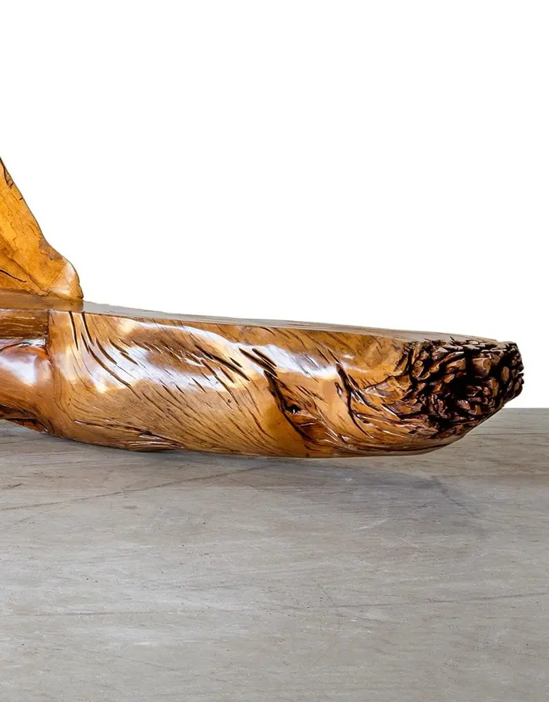 Paratinga Bench in Pequi Wood by Hugo FrançaDimensions: D 220 x W 550,4 x H 130 cm. Materials: Pequi wood.Dimensions may vary. Please contact us.Atelier Hugo França's principle is to transform trunks, roots, and parts of trees that are generally rejected.This raw material is stored at the atelier in Trancoso, then chosen by Hugo França according to its texture and organic shape for various projects.The artist's creative process starts from such dialogue with the raw material, and he draws directly on wood, following the paths created by nature.In production, we reframe the use of the chainsaw by carving trunks and roots and giving the artworks a sustainable and sculptural content.