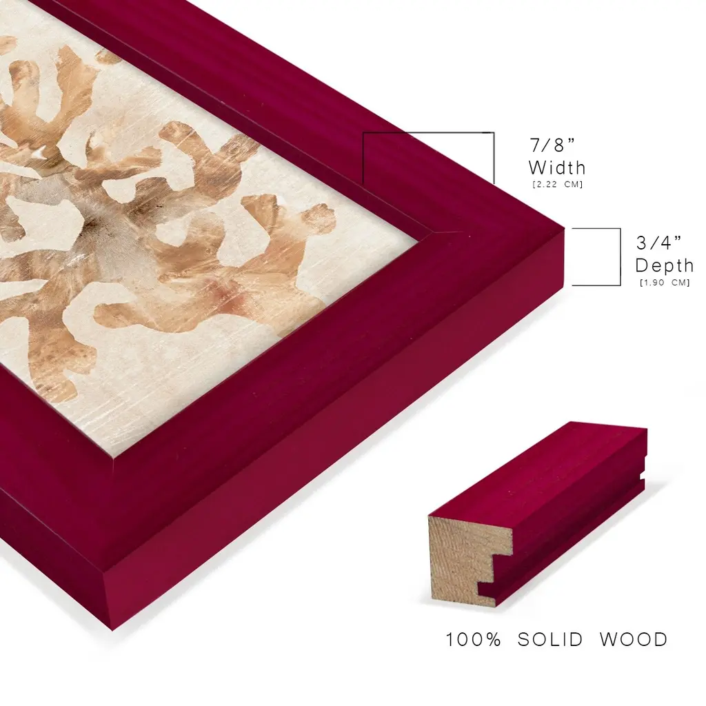 Parchment Coral I -EZ SWITCH Framed Print w/glass-Cherry Red A delightful, framed print. Featuring a solid wood frame with real wood glass. This premium print is giclee quality. In addition, every frame features a removable back and table top stand. This allows you to change your art in the future or to just stand the art on a table for a new look. We are sure you'll enjoy our new series of EZ SWITCH Framed Art. Solid Wood Frame Real Glass Removable / Replaceable Art Built in Tabletop Stand Sizes range from 4x6 up to 12x15 - buy just one or pair them up as sets as you see fit.