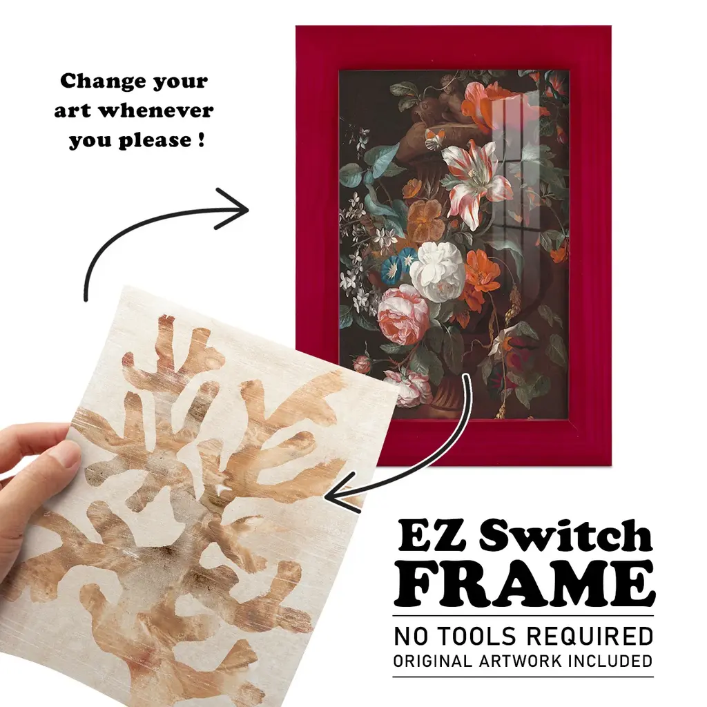 Parchment Coral I -EZ SWITCH Framed Print w/glass-Cherry Red A delightful, framed print. Featuring a solid wood frame with real wood glass. This premium print is giclee quality. In addition, every frame features a removable back and table top stand. This allows you to change your art in the future or to just stand the art on a table for a new look. We are sure you'll enjoy our new series of EZ SWITCH Framed Art. Solid Wood Frame Real Glass Removable / Replaceable Art Built in Tabletop Stand Sizes range from 4x6 up to 12x15 - buy just one or pair them up as sets as you see fit.