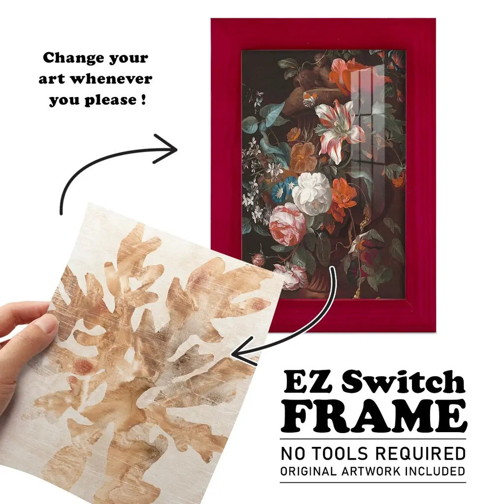 Parchment Coral IV -EZ SWITCH Framed Print w/glass-Cherry Red A delightful, framed print. Featuring a solid wood frame with real wood glass. This premium print is giclee quality. In addition, every frame features a removable back and table top stand. This allows you to change your art in the future or to just stand the art on a table for a new look. We are sure you'll enjoy our new series of EZ SWITCH Framed Art. Solid Wood Frame Real Glass Removable / Replaceable Art Built in Tabletop Stand Sizes range from 4x6 up to 12x15 - buy just one or pair them up as sets as you see fit.